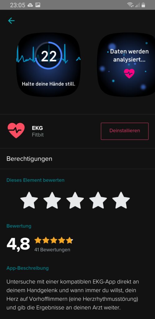 Se avete a disposizione il nuovo wearable della compagnia statunitense dovreste già disporre della nuova applicazione EKG; nel caso in cui non fosse ancora a vostra disposizione, potrebbe essere necessario scaricarla manualmente dallo store presente all’interno dell’applicazione mobile di Fitbit.
