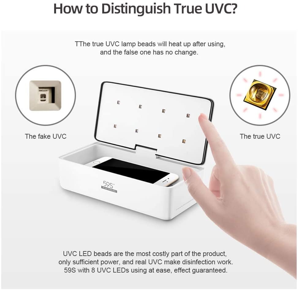 Il processo di sterilizzazione non comporta emissione di radiazioni e non ha effetti dannosi nemmeno su carte di credito, ma ricordate che può creare problemi a occhi e pelle, anche se sono necessarie esposizioni prolungate affinché possano esserci rischi concreti. Tutti gli apparecchi di 59s dispongono di sistemi di protezione che interrompono l’emissione di raggi UVC nel caso il dispositivo venga aperto, sono inoltre presenti protezioni per impedire ai bambini di accenderli inavvertitamente.