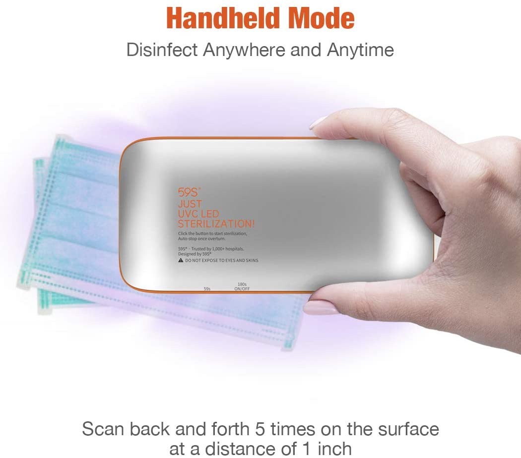È sufficiente posizionarlo al di sopra dell’oggetto da sterilizzare, grazie ai piedini richiudibili che lo mantengono rialzato. Anche in questo caso è presente un sistema di sicurezza che spegne immediatamente le i LED (6 in questo caso), nel caso la lampada dovesse ribaltarsi.