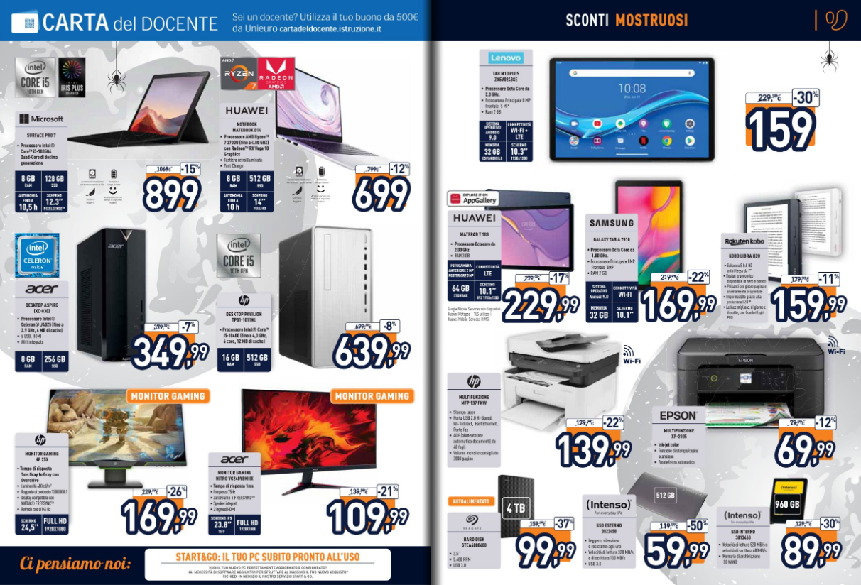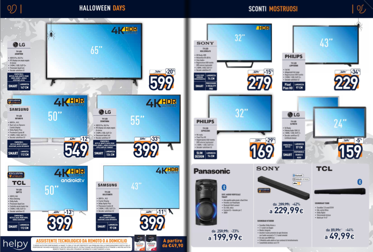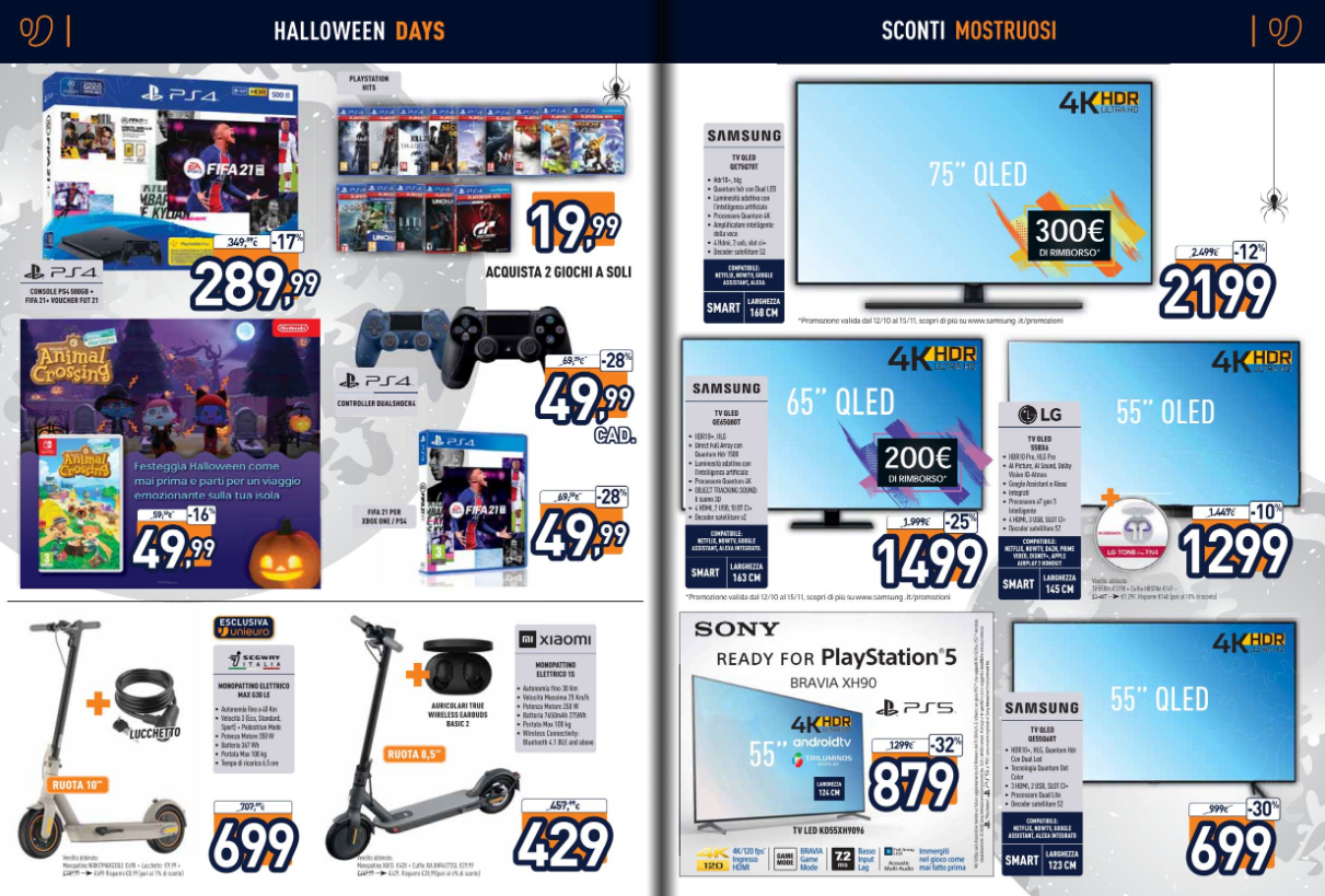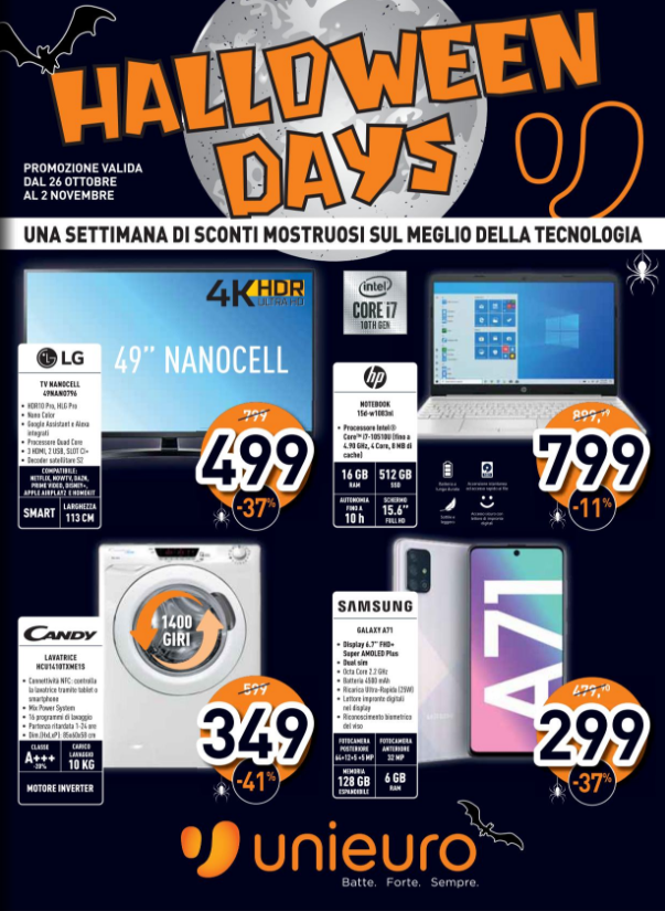 Le offerte Unieuro degli Halloween Days sono disponibili nei punti vendita sparsi per l’Italia e online, anche con consegna gratuita, fino al 2 novembre 2020. Gli sconti sono tantissimi e comprendono come già anticipato diverse categorie di prodotti: ecco le migliori occasioni suddivise per categoria.