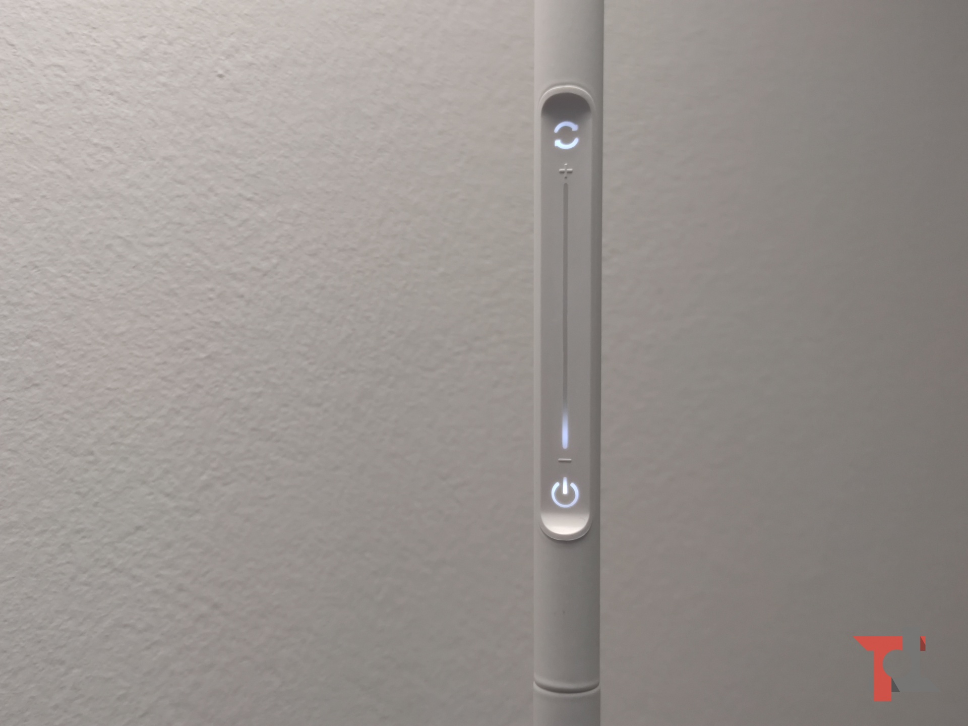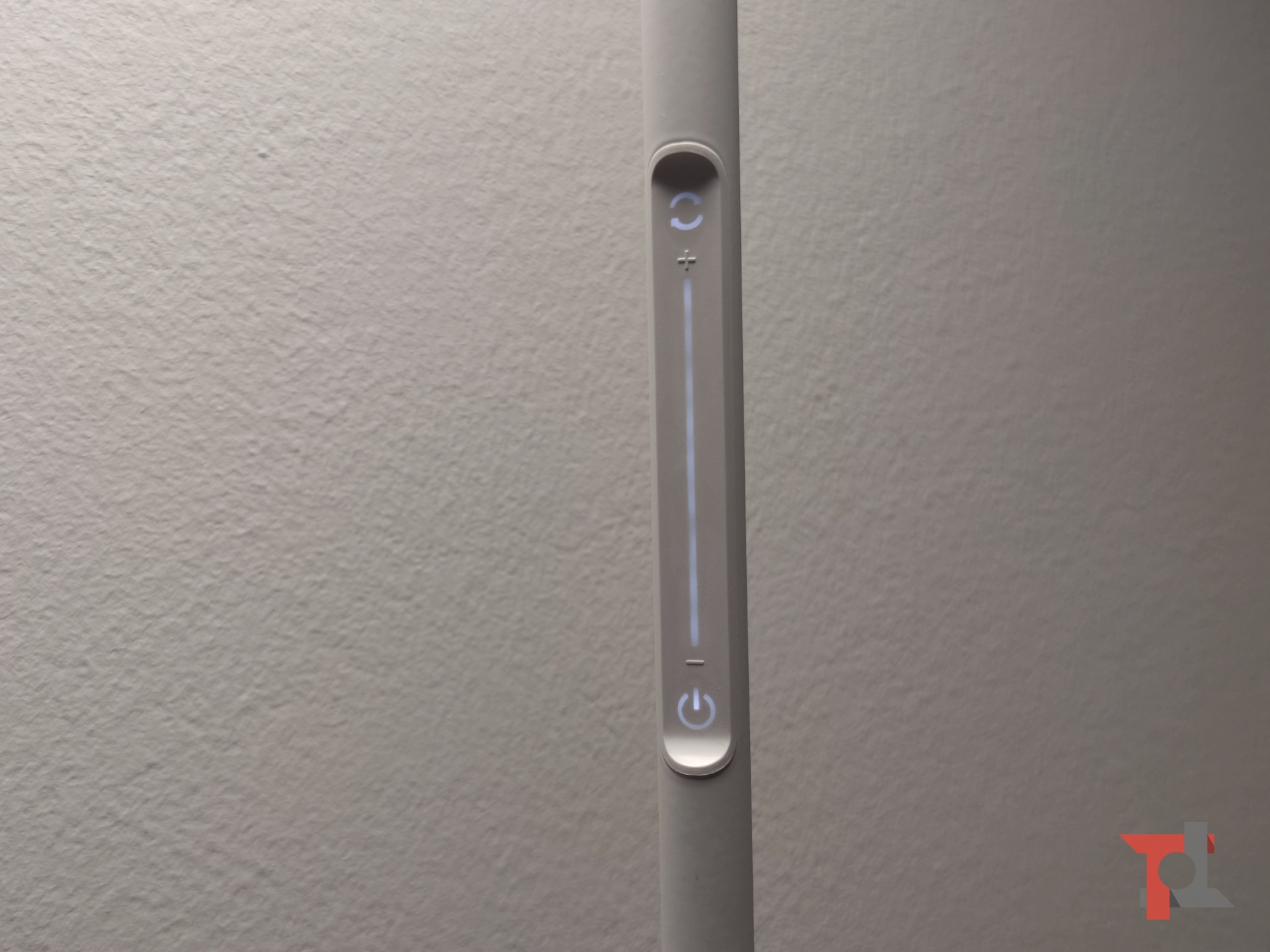 Se non volete alcuna funzione intelligente, Yeelight Floor Lamp può essere utilizzata anche con i soli controlli touch, presenti sullo stelo. Oltre al tasto di accensione/spegnimento sono presenti un cursore per regolare la luminosità (basta scorrere il dito verso l’alto o il basso per variarla, e un secondo tasto.