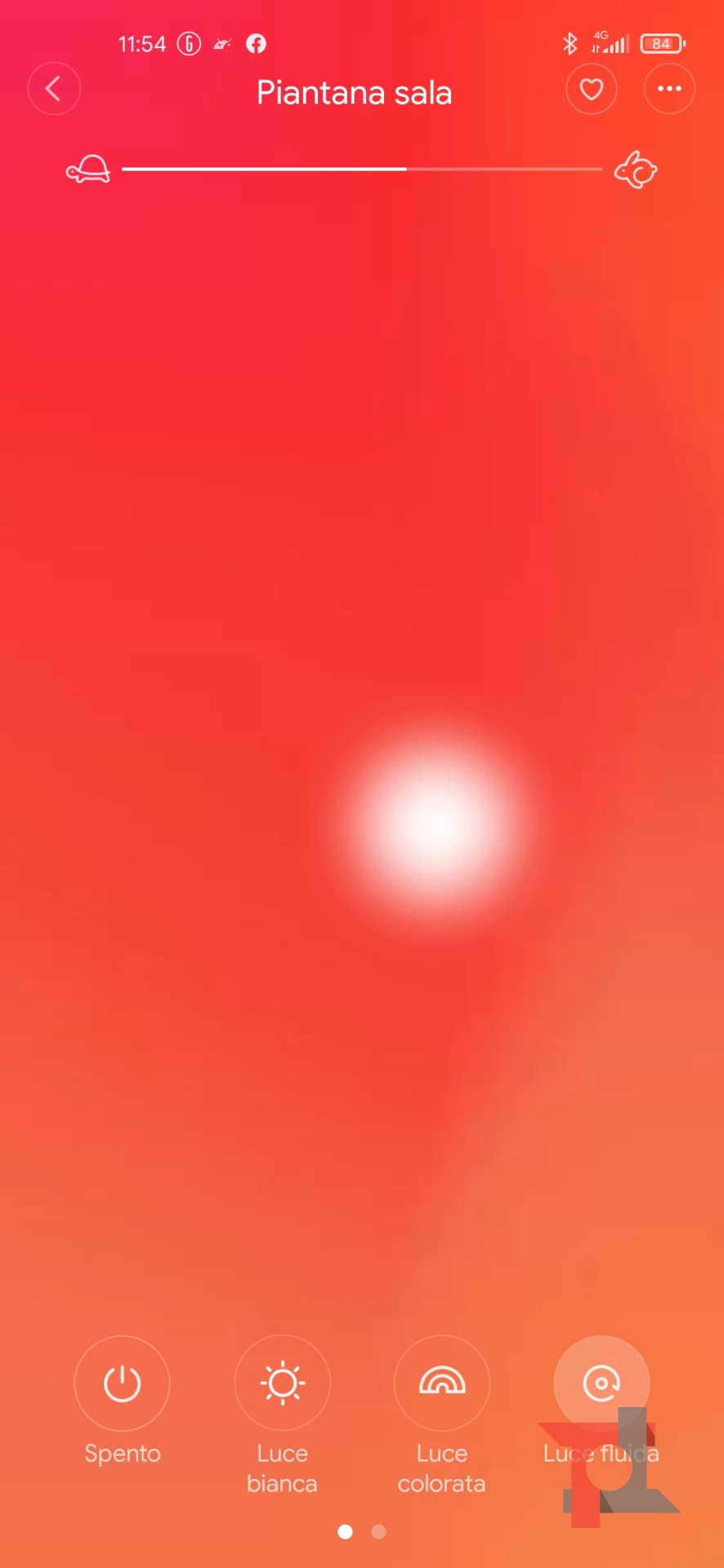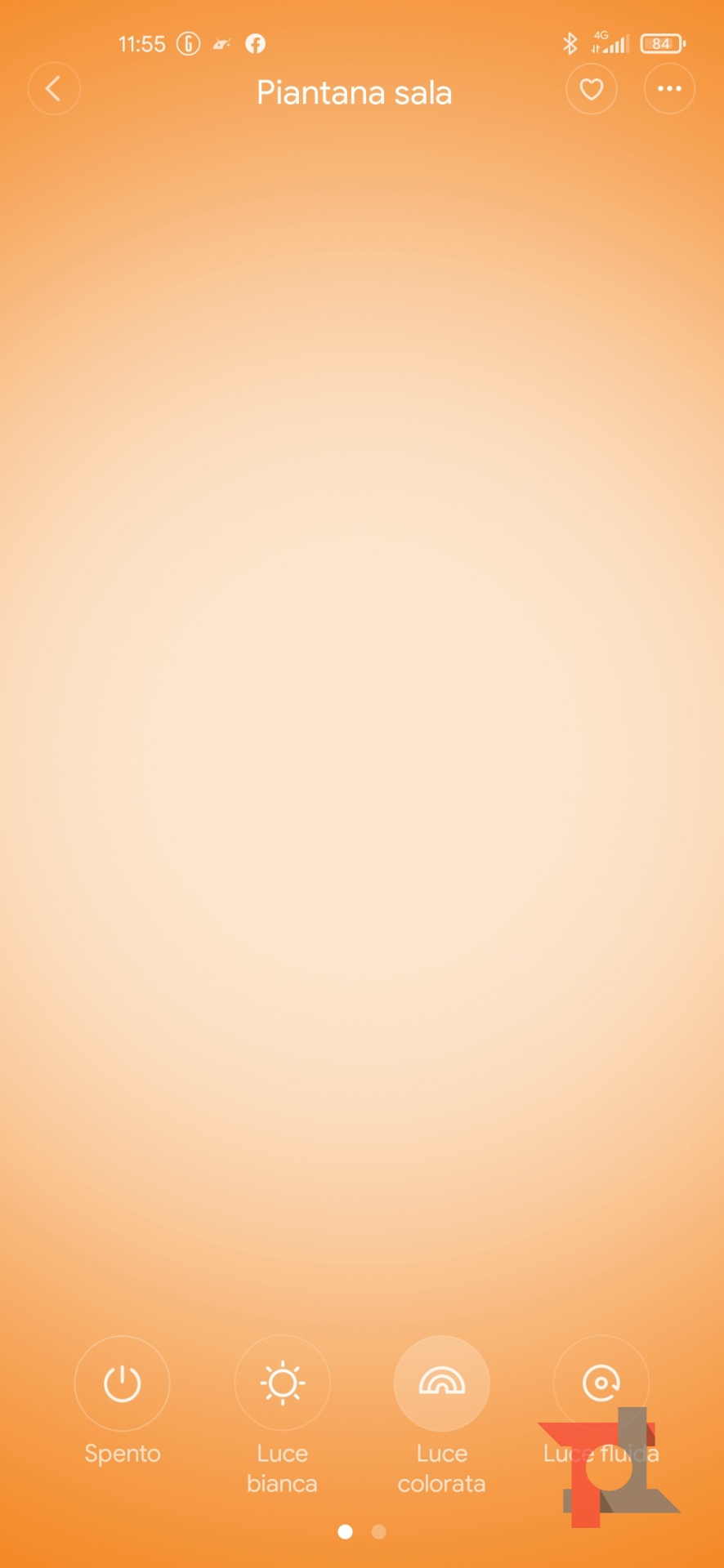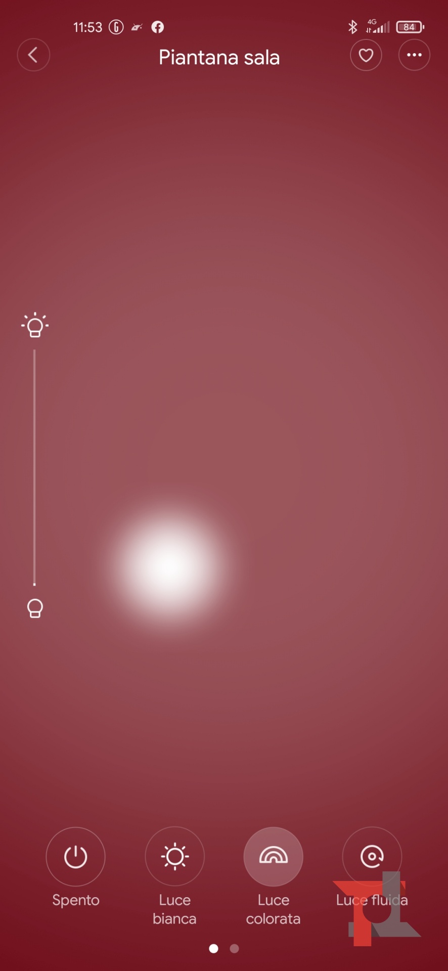 Quest’ultimo permette di cambiare la temperatura colore quando la lampada è impostata con luce bianca, o di cambiare colore nella modalità colore. Quest’ultima si attiva premendo contemporaneamente i due tasti per un paio di secondi. Le modifiche alla luce si riflettono ovviamente sia sulla luce inferiore che su quella superiore.