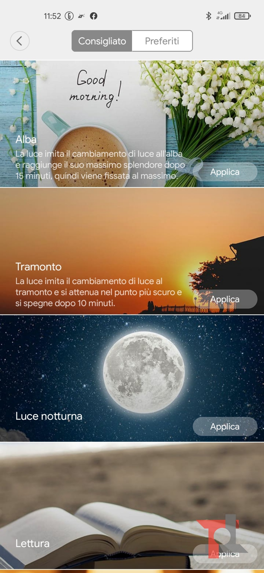 A questo punto potrete creare tutte le automazioni che vorrete, facendo interagire la lampada con gli altri dispositivi intelligenti della vostra casa, ma anche regolare in maniera più semplice luce, colore e intensità. E grazie all’apposita sezione potete applicare uno dei tanti scenari a disposizione, per guardare film, leggere, simulare alba o tramonto, il tremolio di una candela o per creare un’atmosfera romantica.