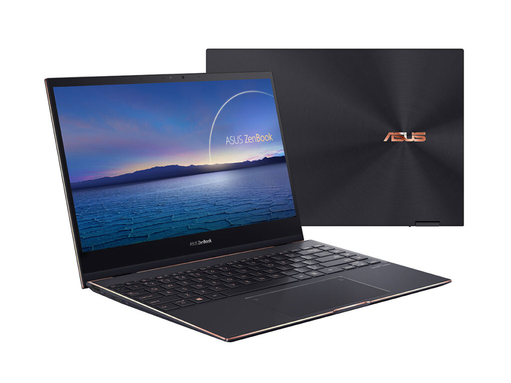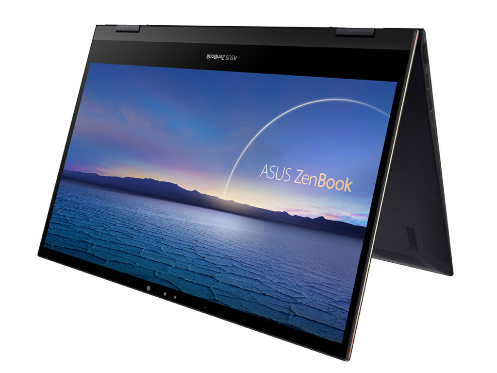 Frontalmente è presente un bel pannello touchscreen Glossy OLED da 13,3 pollici a risoluzione 4K UHD con supporto alla stylus ASUS Pen (in dotazione) e, ovviamente, la cerniera Ergolift 360° che permette di ruotare liberamente il computer e posizionarlo in modalità tablet, tenda, presentazione o laptop. Al suo interno è presente il processore Intel Core i7–1165G7 di undicesima generazione affiancato da 16 GB di RAM LPDDR4X (non espandibile) e archiviazione SSD M.2 NVMe da 1 TB.
