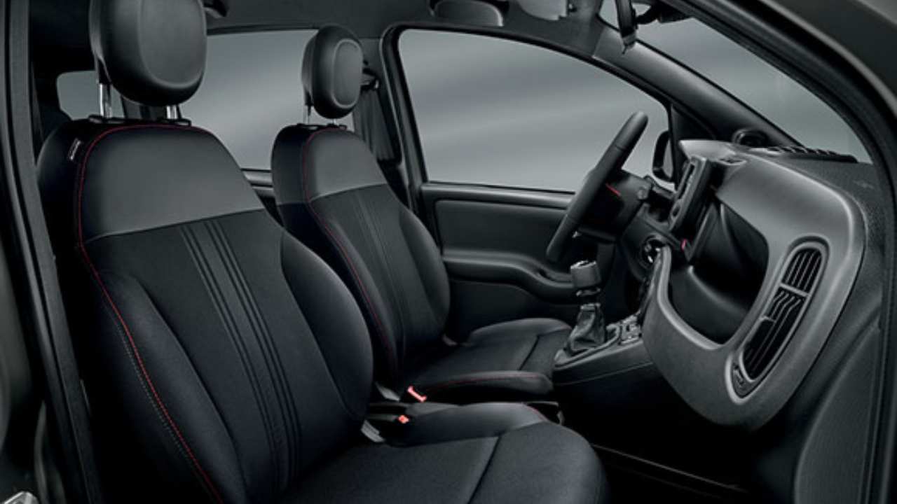 L’allestimento di Fiat Panda Sport prevede dei cerchi in lega bicolore “Sport” da 16 pollici, maniglie porta e specchietti retrovisori in tinta carrozzeria, con l’esclusiva per Panda della colorazione Grigio Opaco delle immagini, e il logo “Sport” cromato sulla fiancata. All’interno ci sono cruscotto in color titanio, pannelli porte in eco-pelle, e dei nuovi sedili con un rivestimento specifico per l’allestimento in grigio scuro.