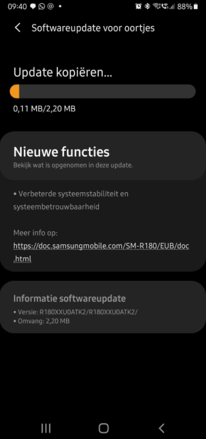 La nuova versione del firmware delle cuffie true wireless del colosso coreano è contraddistinta dalla sigla R180XXU0ATK2 ed ha un “peso” di poco più di 2 MB: in sostanza, non aspettatevi rivoluzioni ma soltanto un continuo lavoro di miglioramento dell’esperienza utente offerta attraverso la risoluzione di qualche bug riscontrato nelle precedenti release.