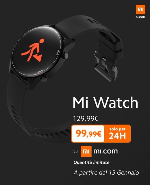 Xiaomi Mi Watch sarà in vendita a partire dal 15 gennaio in quantità limitate, su Mi.com e su Amazon. Solo per le prime 24 ore sarà possibile acquistarlo a 99 euro invece di 129,99 euro. Lo smartwatch è già preordinabile su Amazon anche se attualmente il prezzo indicato è superiore al prezzo di listino.