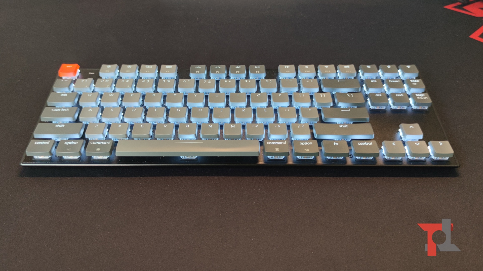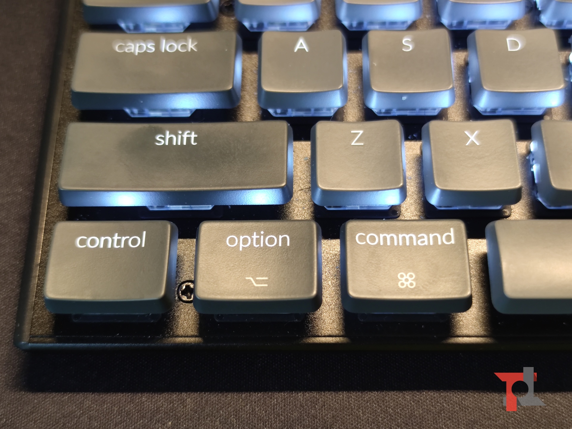 La tastiera Keychron K1 a offrire la possibilità di utilizzare nella confezione di vendita un set di tasti specifici per Windows, mentre di serie sono già installati quelli per Mac. È inoltre presente un tasto ESC di colore rosso/arancione, con la possibilità di sostituirlo con uno grigio, per gli utilizzi più “seriosi”. Non è possibile utilizzare keycaps di altri produttori, cosa possibile invece con la Motospeed, in quanto il sistema di fissaggio dei tasti è diverso da quello standard.