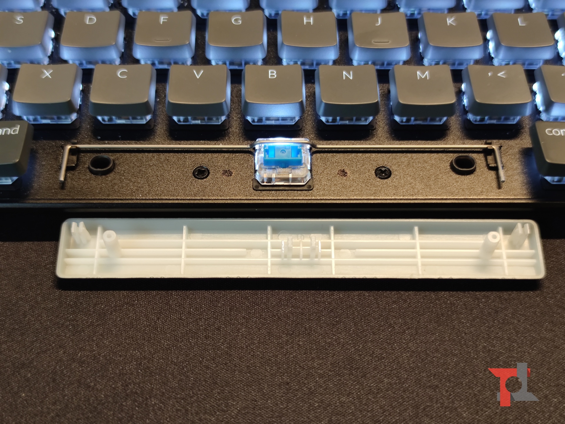 Prima di affrontare la parte dedicata al “suono” della tastiera e al feedback tattile, voglio però parlarvi della retroilluminazione. Per anni l’ho considerata sostanzialmente inutile, ma dopo averla provata è una cosa di cui non riesco più a fare a meno. Non tanto per il fatto che mi permette di lavorare al buio dopo una certa ora, quanto per il fatto che migliora decisamente la visibilità dei vari tasti ma anche la “durabilità” per usare un termine tanto caro a JerryRigEverything.