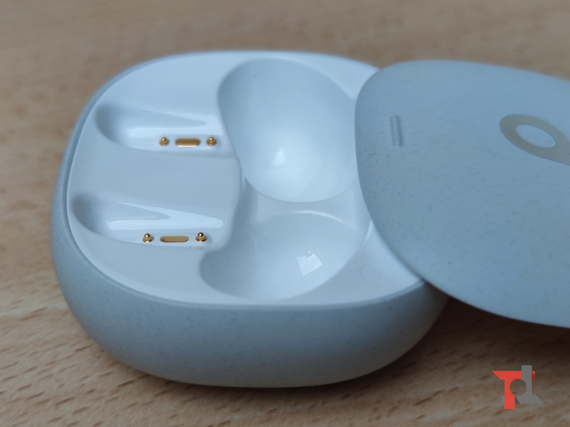 La presenza della ricarica wireless è un plus che abbiamo apprezzato, visto che basta appoggiarle sulla basetta per veder ricaricare la custodia in circa un’ora, lo stesso tempo che impiega con la ricarica cablata (via USB Type-C).