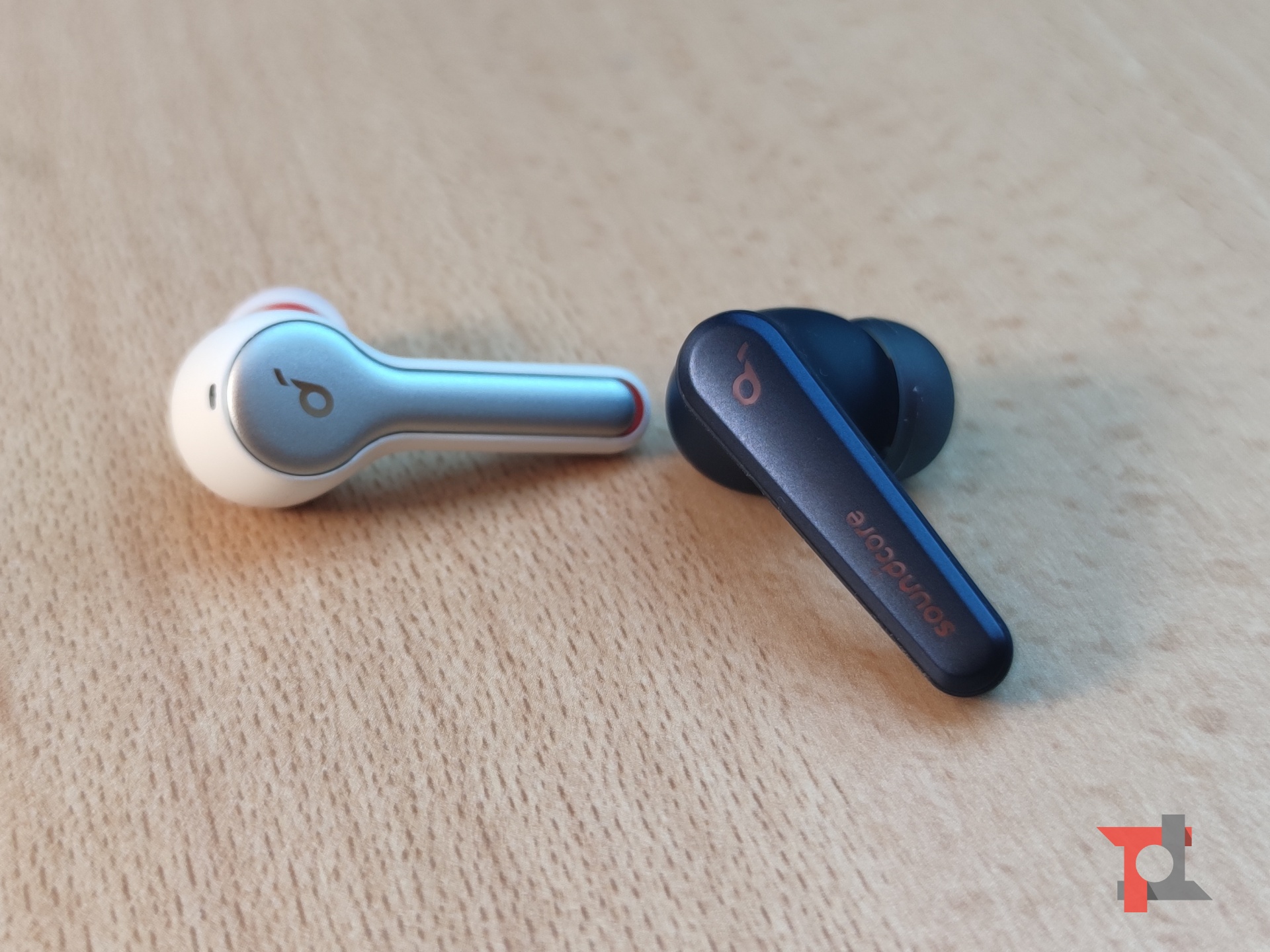 A un primo sguardo il design può sembrare lo stesso delle Soundcore Liberty Air 2, ma uno sguardo più attento rivela diverse novità. Si parte ovviamente dai contatti per la ricarica, posti lungo lo stelo invece che alla sua base, mentre il sensore che rileva se le cuffie sono indossate è nascosto sotto al guscio e non è visibile, come invece accadeva nel modello precedente.