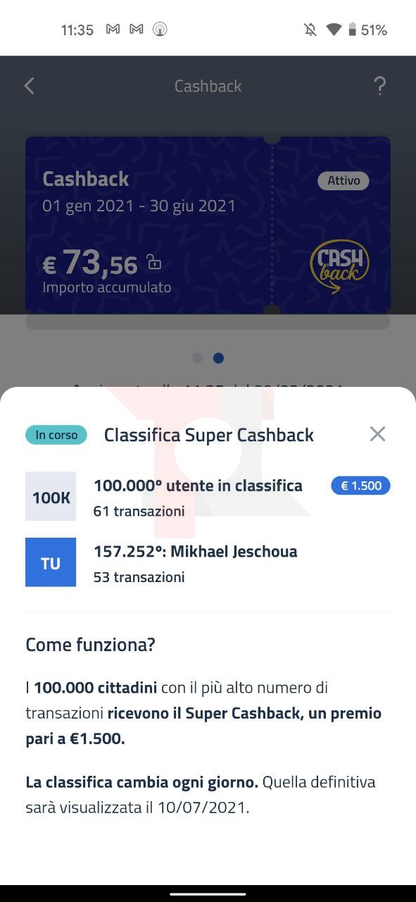 Vai a: come scoprire la propria posizione in classifica nel Super Cashback