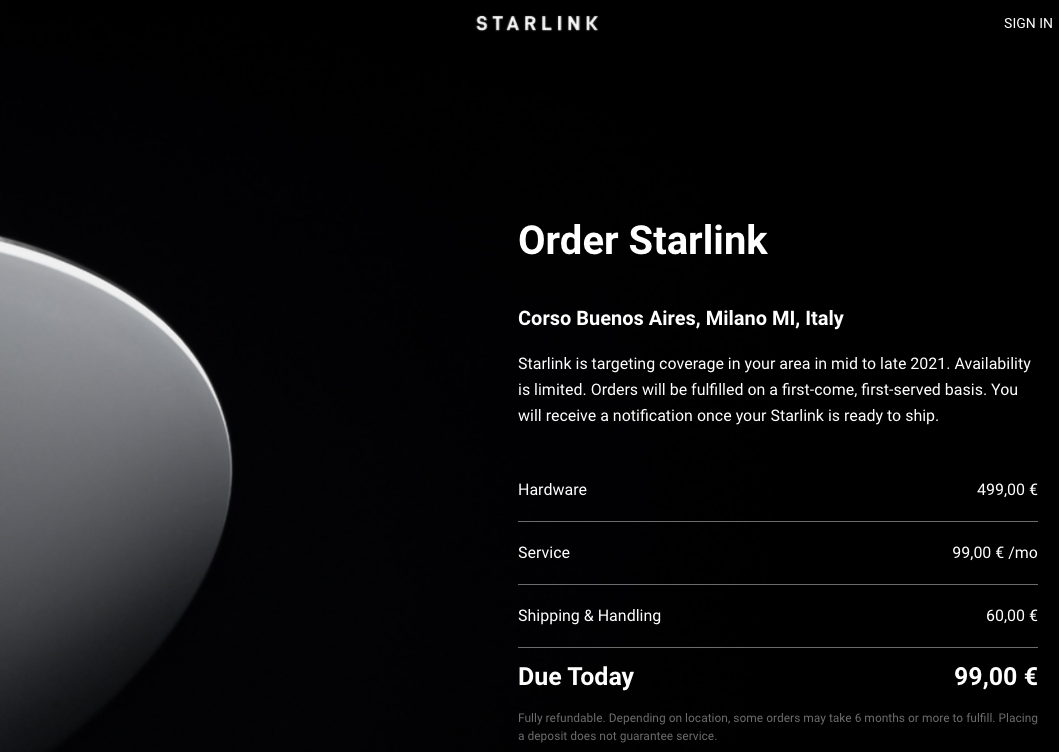 Se siete interessati al servizio potete prenotarvi alla pagina ufficiale di Starlink, inserendo una email e l’indirizzo della vostra abitazione.
