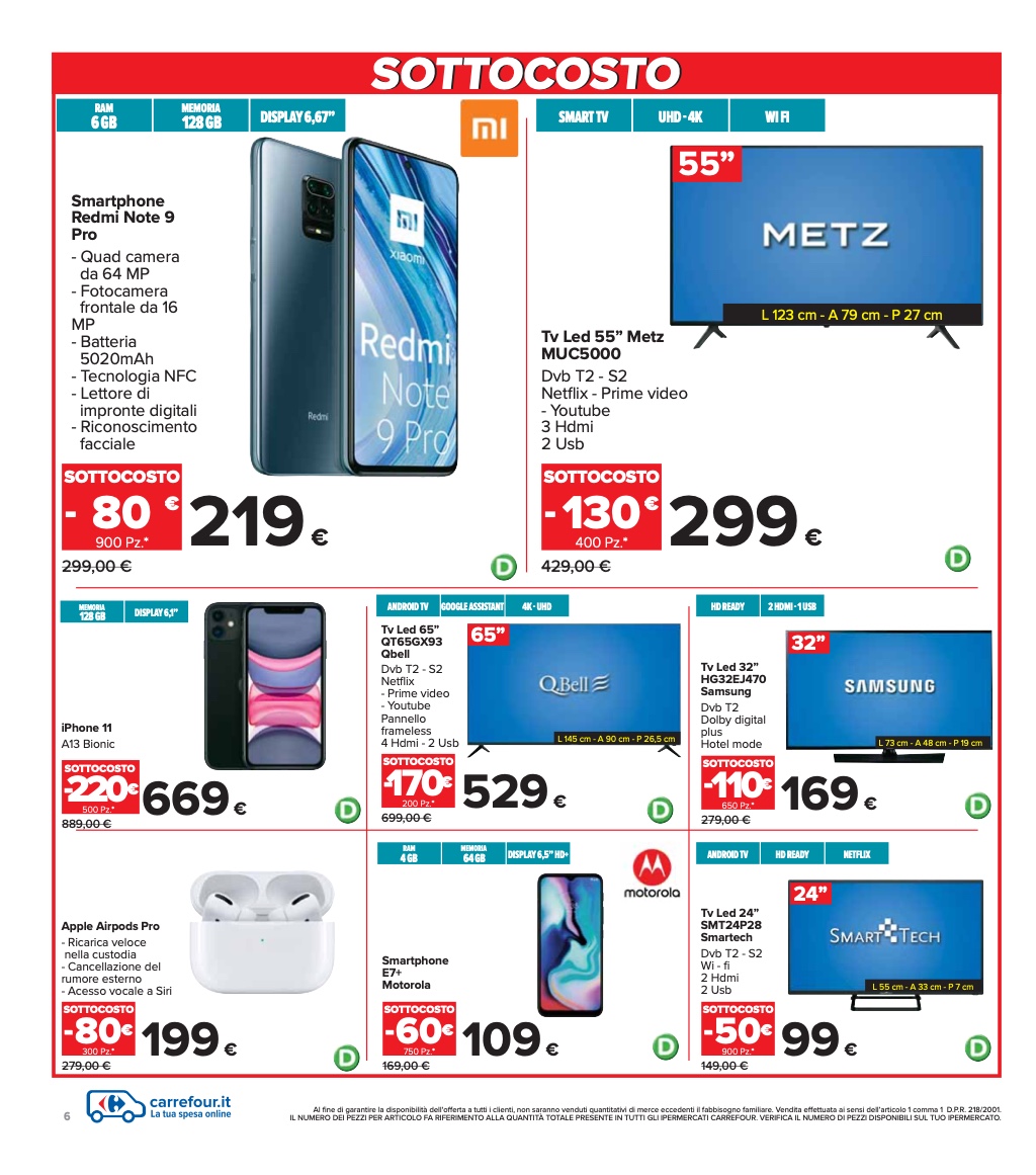 Il nuovo volantino Carrefour, valido fino al 7 marzo 2021, nasconde, al suo interno, delle offerte davvero interessanti su diversi smartphone, per i quali ci sarà uno sconto fino a 220 euro rispetto al prezzo di listino, nonché la possibilità di usufruire del finanziamento a tasso zero in 20 rate (TAN fisso 0%, Taeg 0%). A dirla tutta, gli smartphone in promozione non sono poi così tanti, ma abbiamo comunque deciso di segnalarvi le migliori, cui si aggiungono alcune TV (NdR, nella galleria a fine articolo sono presenti gli altri prodotti in promo).
