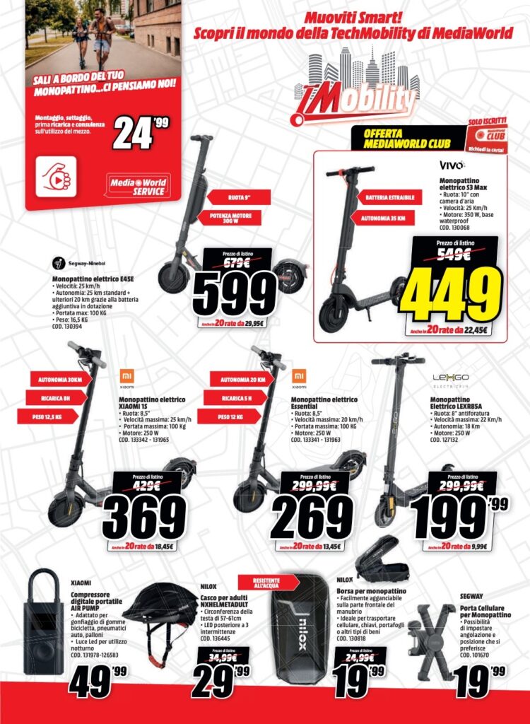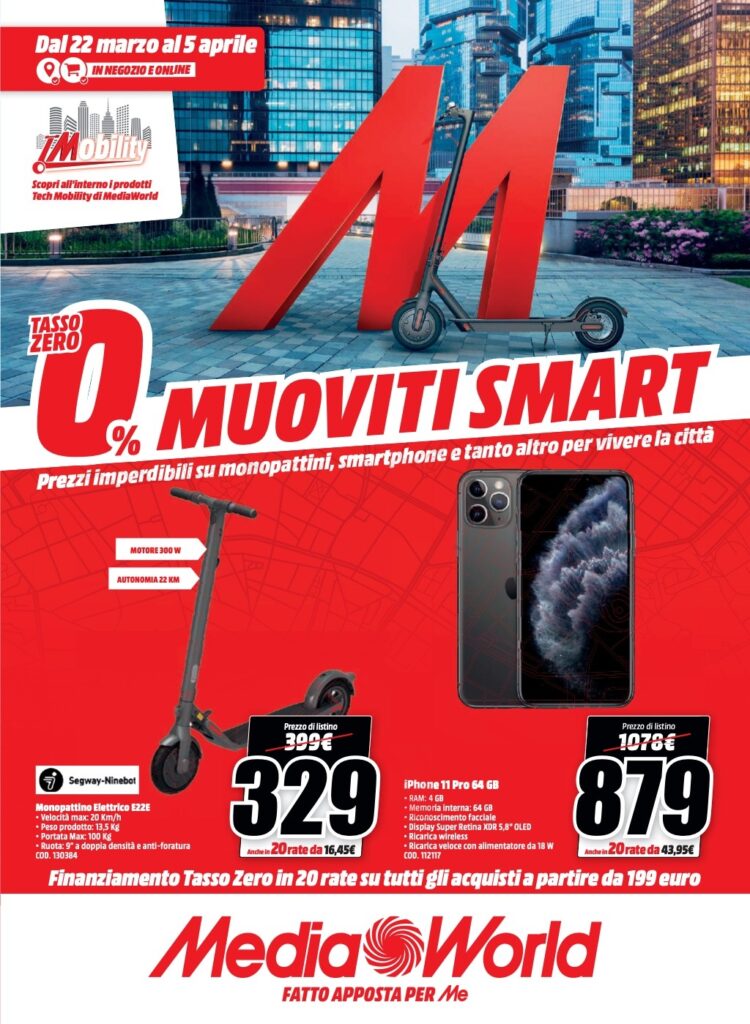 Parte oggi e sarà valido fino al 5 aprile il nuovo volantino di MediaWorld, la nota catena di elettronica di consumo, valido sia online che nei punti vendita sul territorio italiano. Si chiama “Muoviti Smart” ed è ovviamente dedicato alla micromobilità elettrica, ma contiene numerose offerte anche per quanto riguarda altri prodotti tecnologici.