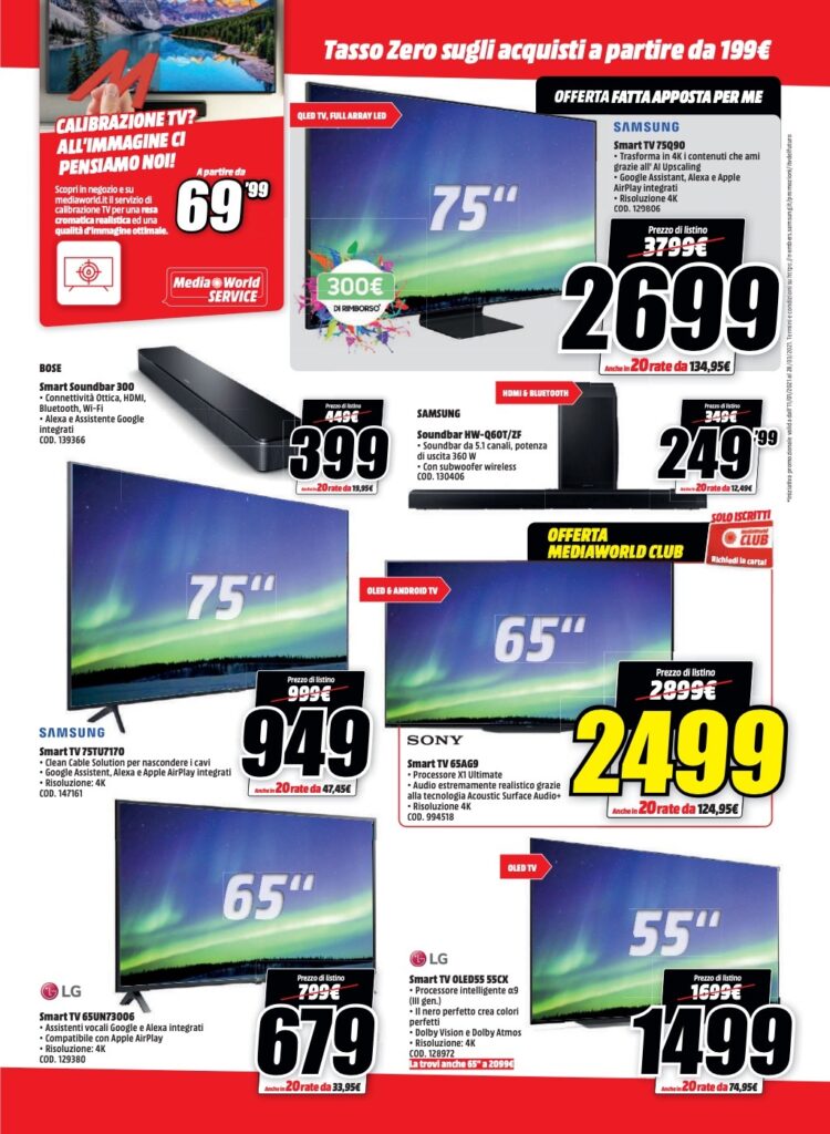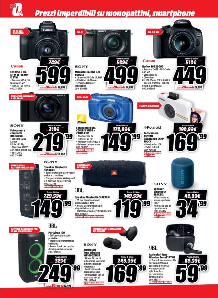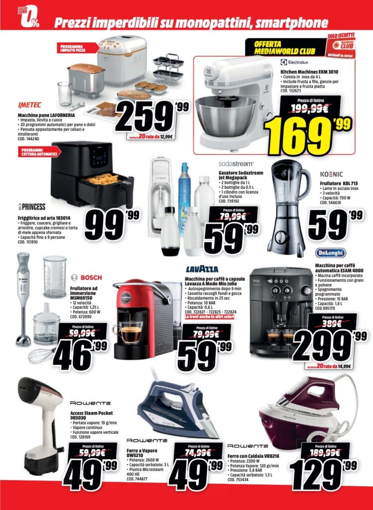 A fine pagina trovate l’intero volantino, insieme al link per accedere alle offerte online. Da sottolineare innanzitutto la possibilità di pagare i propri acquisti a tasso zero, senza alcuno costo aggiuntivo, per tutti i prodotti dal costo superiore a 199 euro. Sono azzerati anche i costi di apertura pratica e imposte varie, quindi il prezzo finale che andrete a pagare sarà esattamente lo stesso che otterrete pagando alla consegna.