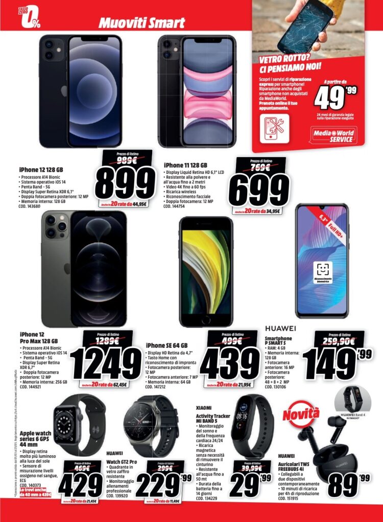 - iPhone 12 128 GB a 899 euro invece di 989 euro