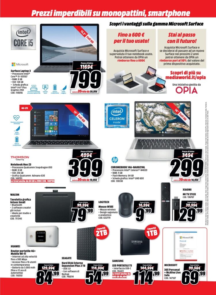 Ricordate inoltre che potete acquistare online e ritirare il prodotto in negozio senza alcun costo aggiuntivo, mentre la spedizione a domicilio parte da 4,99 euro. Vediamo dunque di scoprire le offerte più interessanti preparate da MediaWorld.