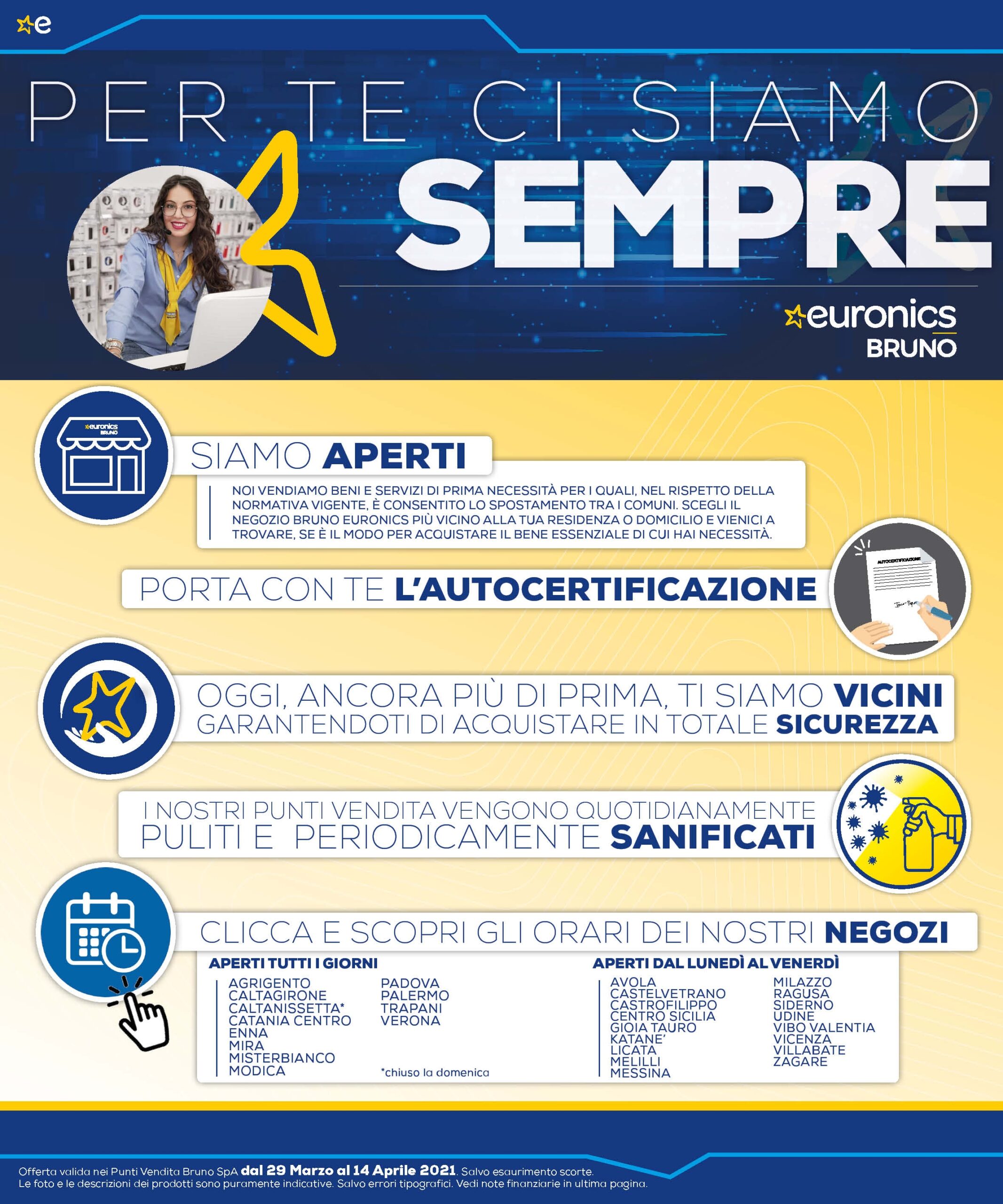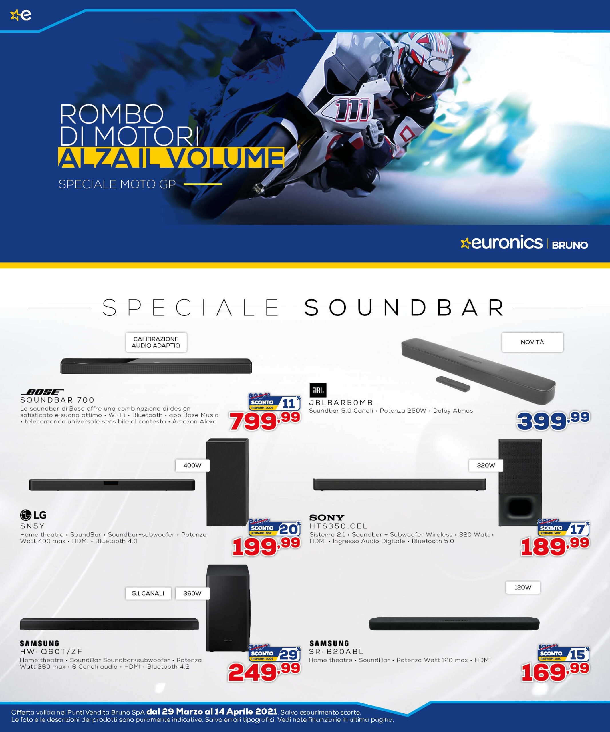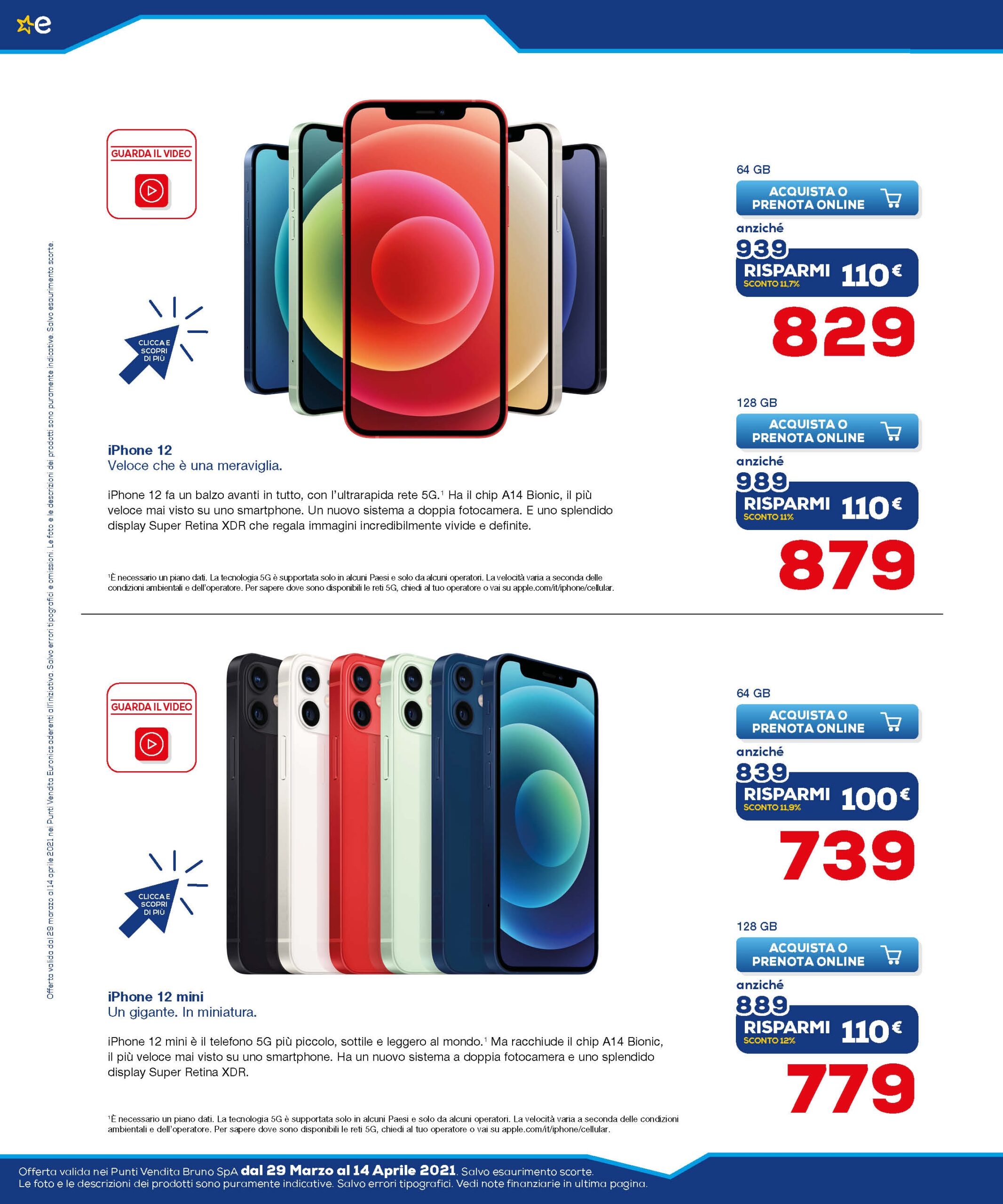 Nel caso di Euronics il discorso diventa decisamente più articolato, dal momento che sono stati attivati dei volantini specifici per le varie piattaforme – Tufano, SIEM, CDS e Bruno –, tutti accomunati dal periodo di validità: dal 29 marzo al 14 aprile 2021.