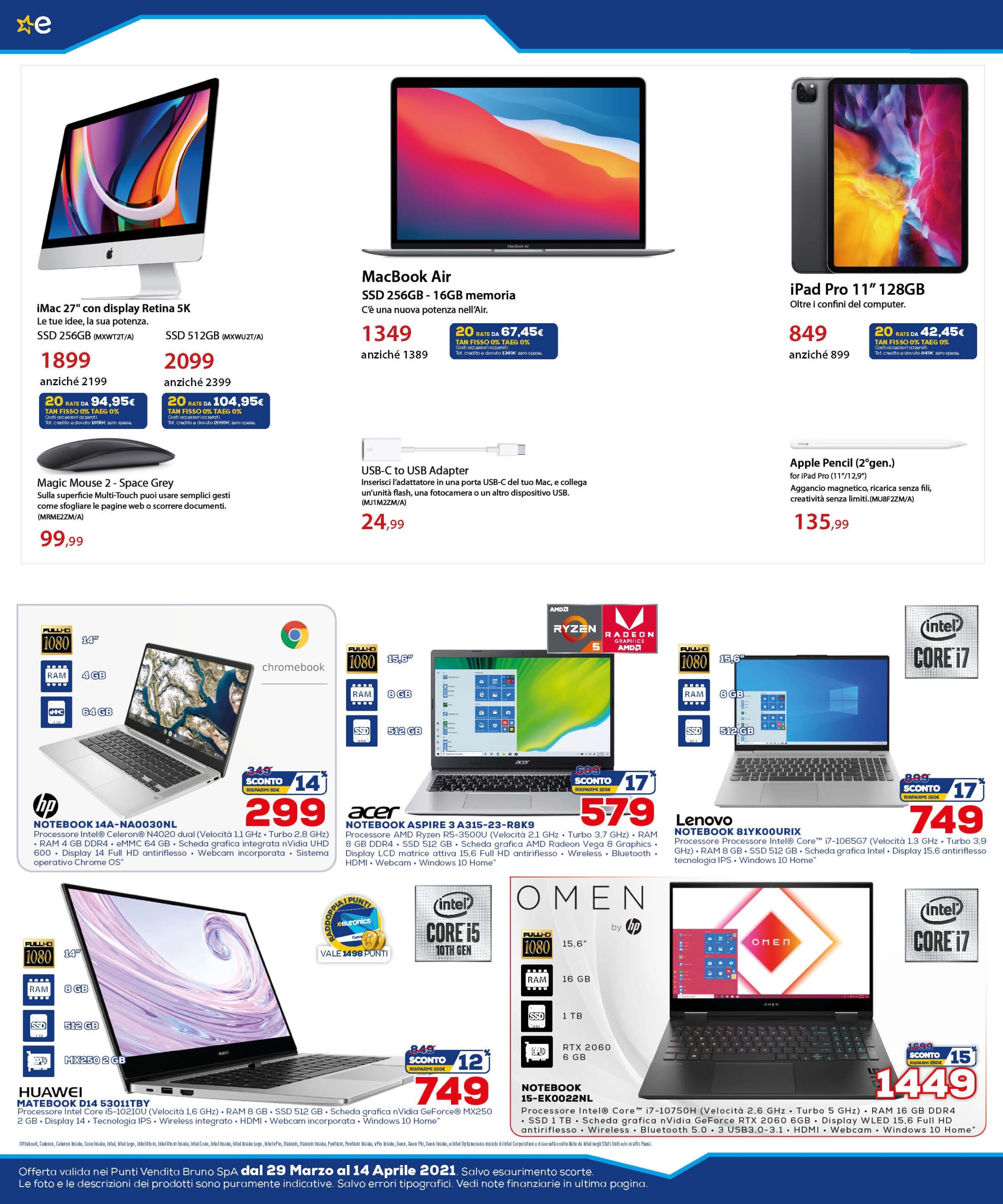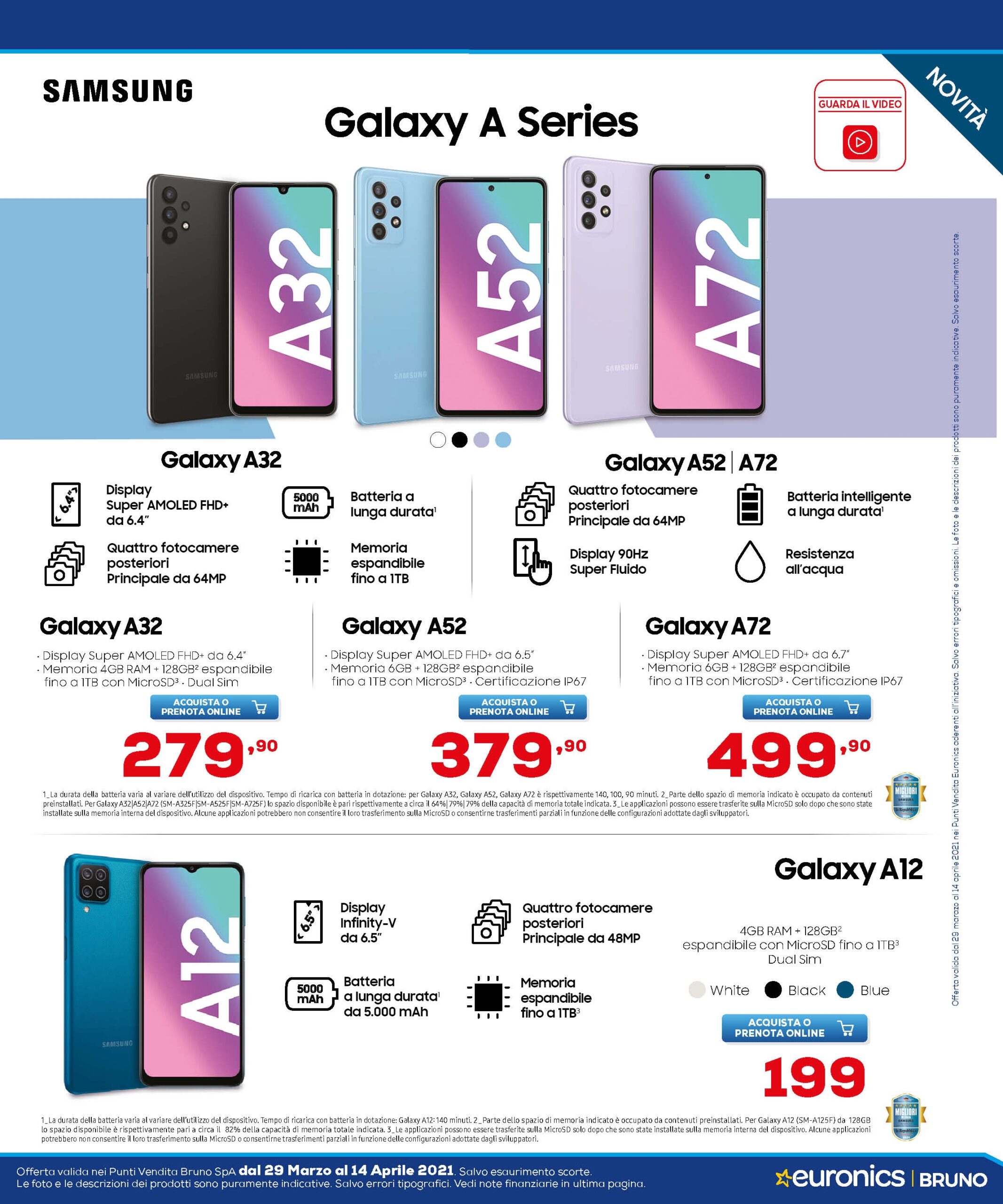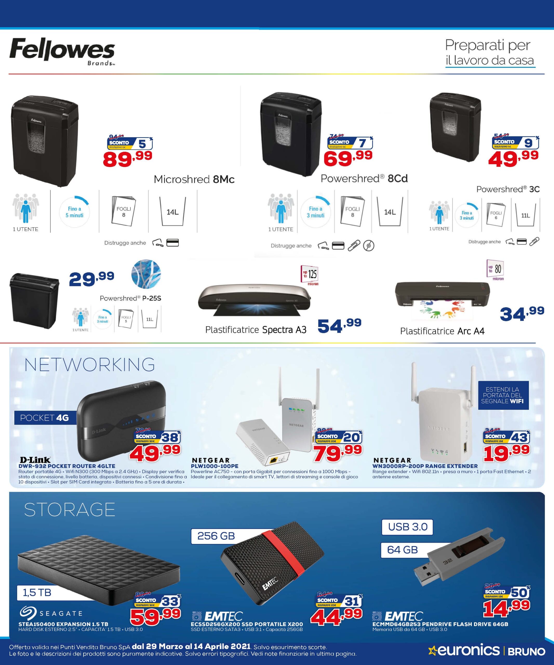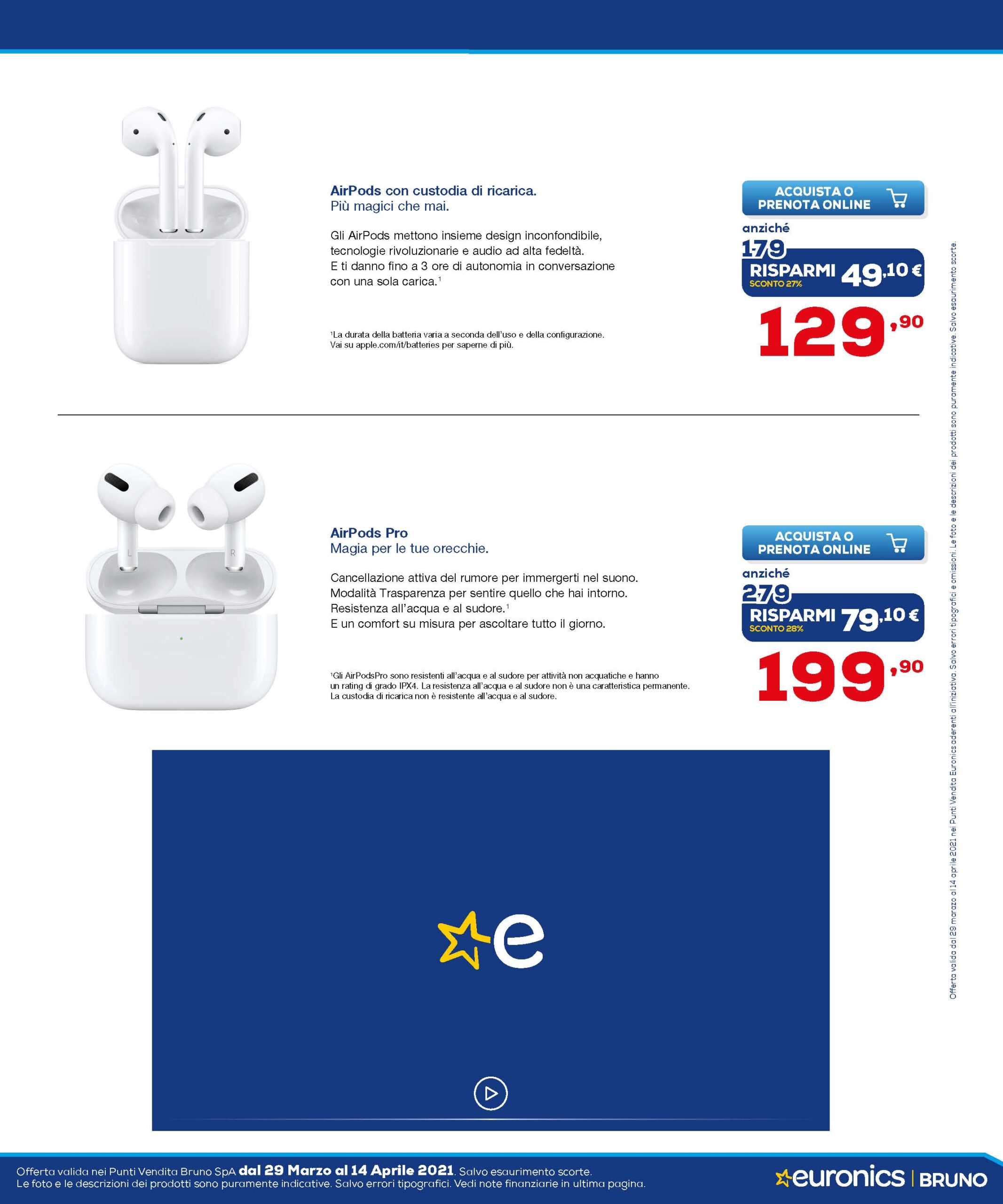 Nel caso di Euronics il discorso diventa decisamente più articolato, dal momento che sono stati attivati dei volantini specifici per le varie piattaforme – Tufano, SIEM, CDS e Bruno –, tutti accomunati dal periodo di validità: dal 29 marzo al 14 aprile 2021.