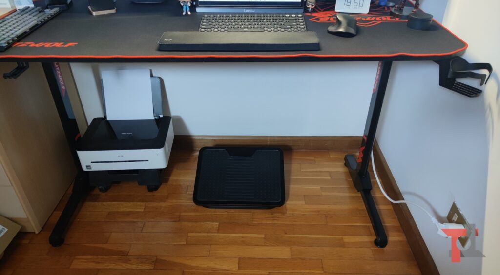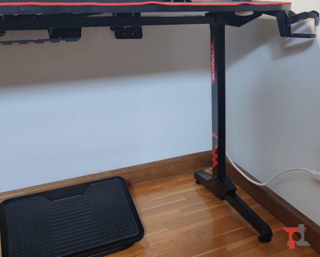 Da questo punto di vista quindi la Blitzwolf BW-GD2 è decisamente promossa, sia per il facile assemblaggio sia per la qualità dei materiali utilizzati per la sua realizzazione. Da segnalare i piedini regolabili in altezza, perfetti per essere sicuri che la scrivania sia in piano e utili per guadagnare qualcosa in altezza. Le dimensioni sono di 140 x 60 centimetri, anche se al centro della scrivania, nella parte posteriore, è presente un inserto che porta la profondità a 66 centimetri. Al di sotto è posizionata la staffa per la ciabatta di alimentazione del computer e per organizzare al meglio i cavi. L’altezza da terra è di 75 centimetri, ottima dunque per una postazione di lavoro o di gioco. Il peso complessivo è di poco superiore ai 22 Kg, per cui riuscirete a montarla e spostarla anche da soli.