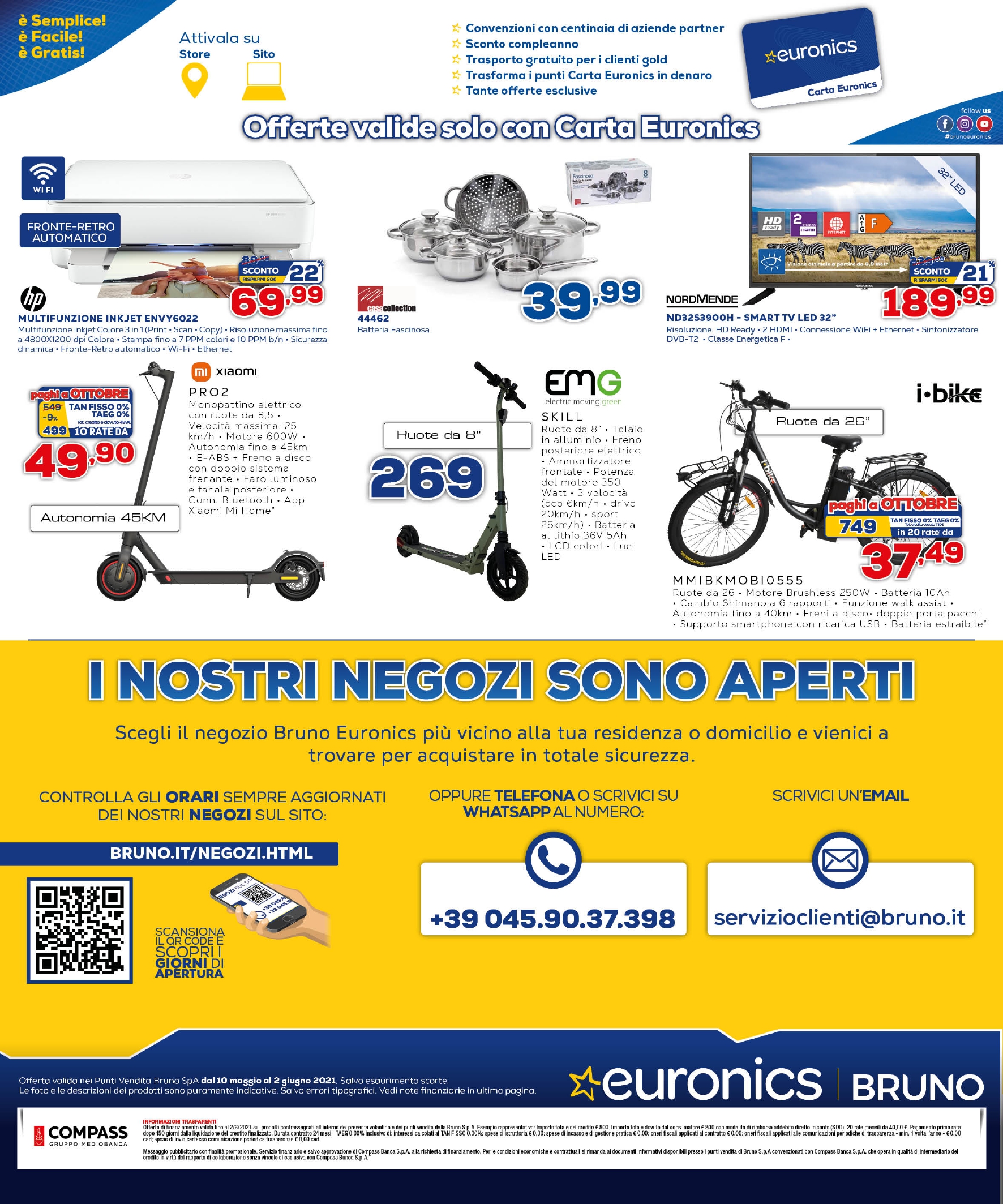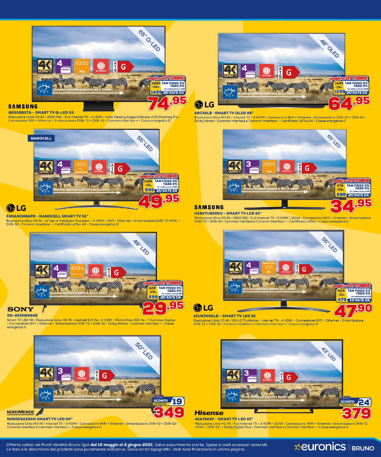 Mentre nei punti vendita Nova, Dimo e La Via Lattea sono ancora valide per poche ore le offerte che abbiamo visto i giorni scorsi (le trovate a questo link e a questo indirizzo), Euronics lancia un nuovo volantino dedicato ai negozi Bruno che si concentra sul tasso zero con pagamenti dal prossimo autunno: gli sconti sono parecchi e risultano validi fino al 2 giugno 2021.