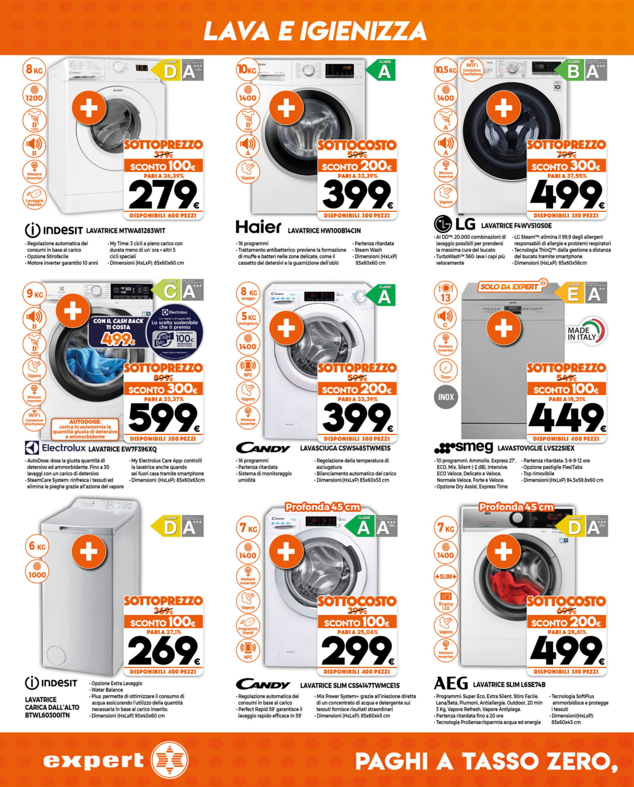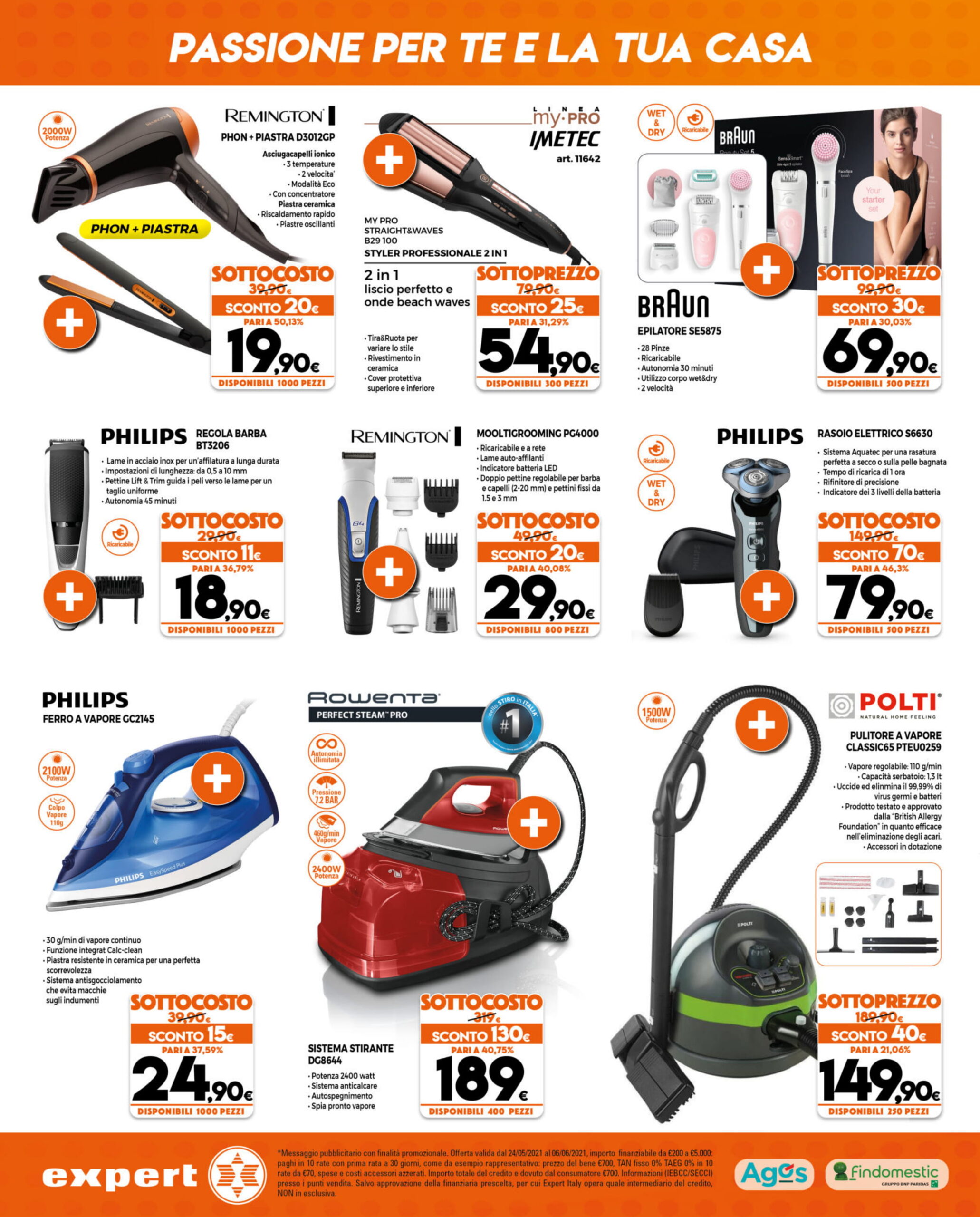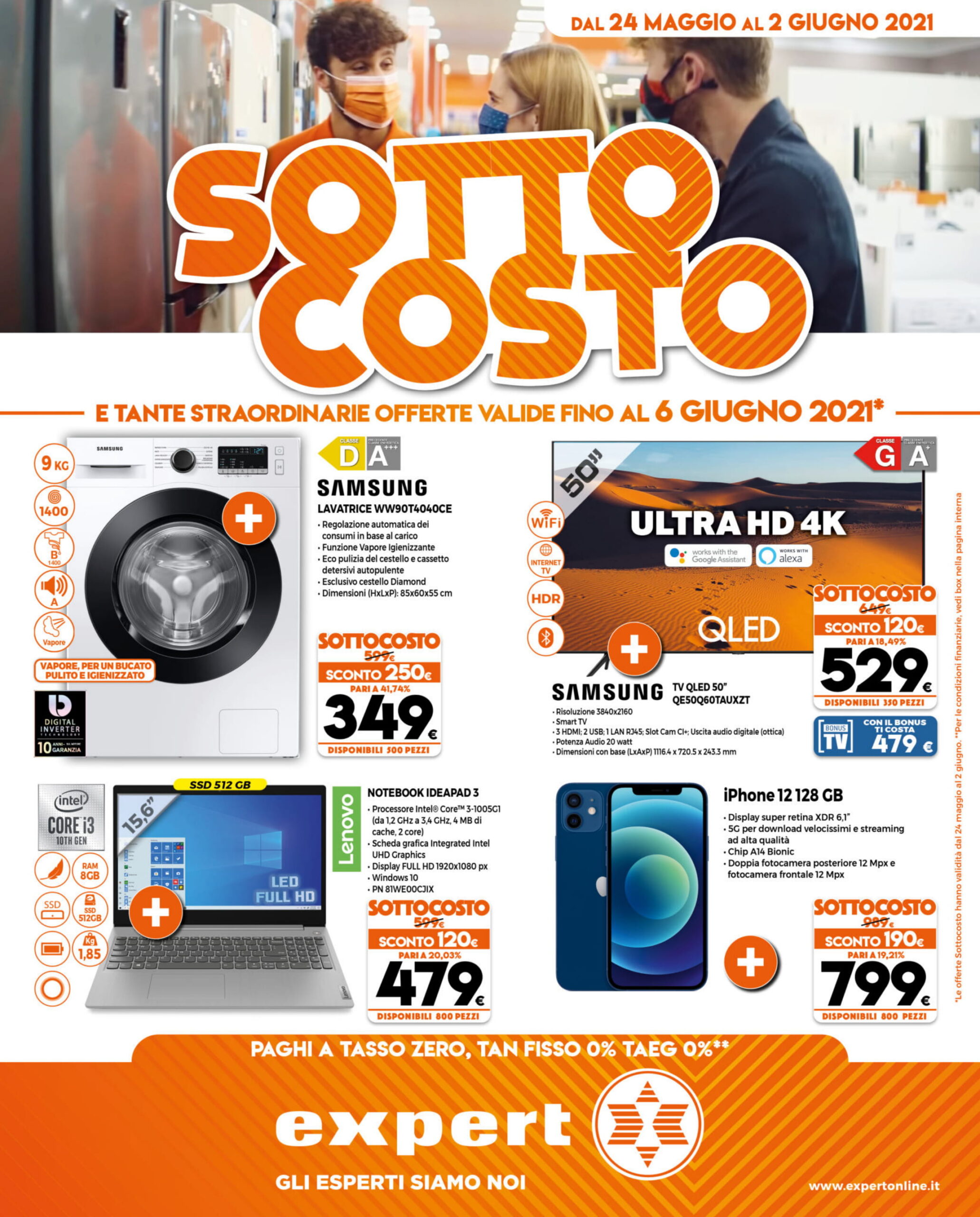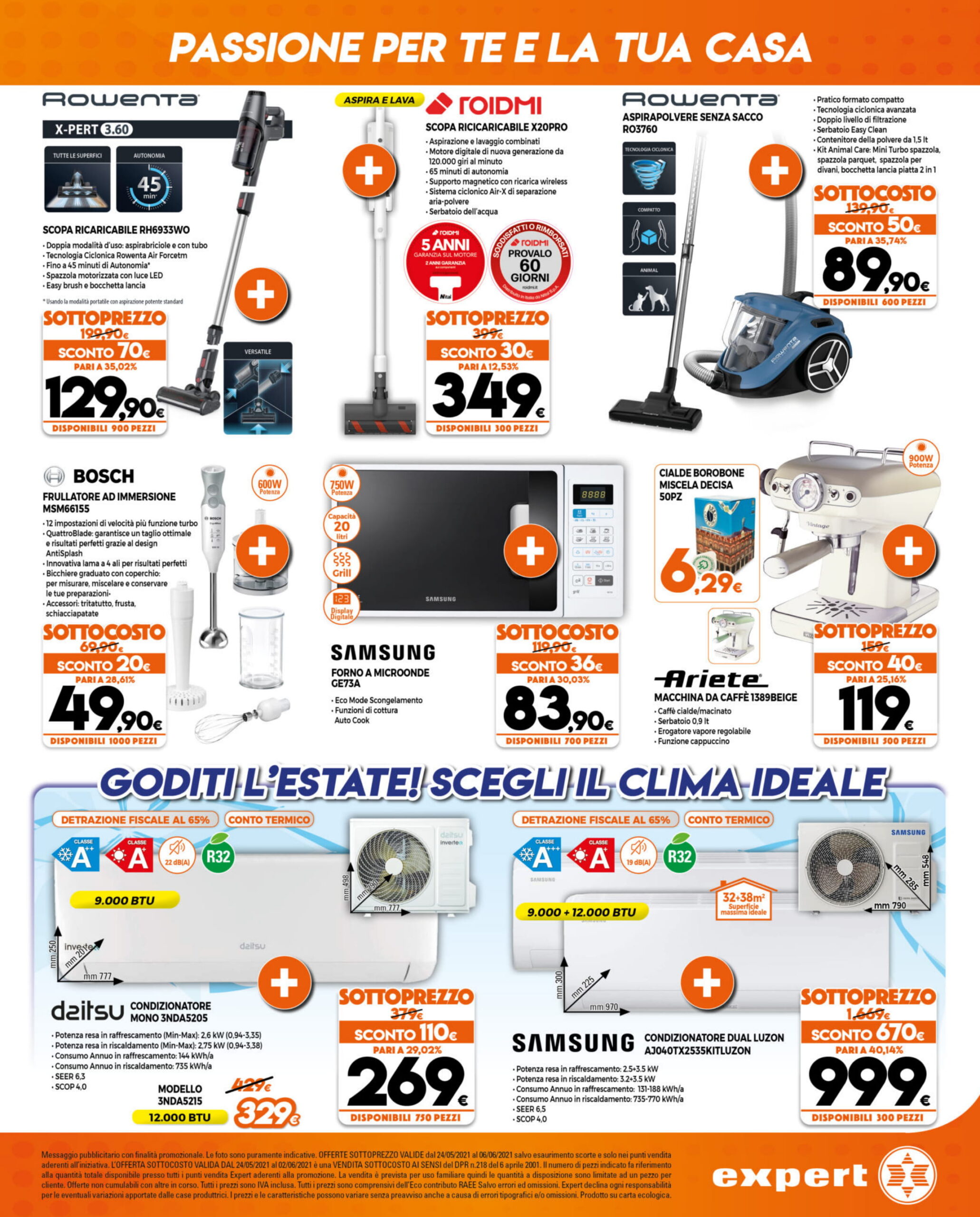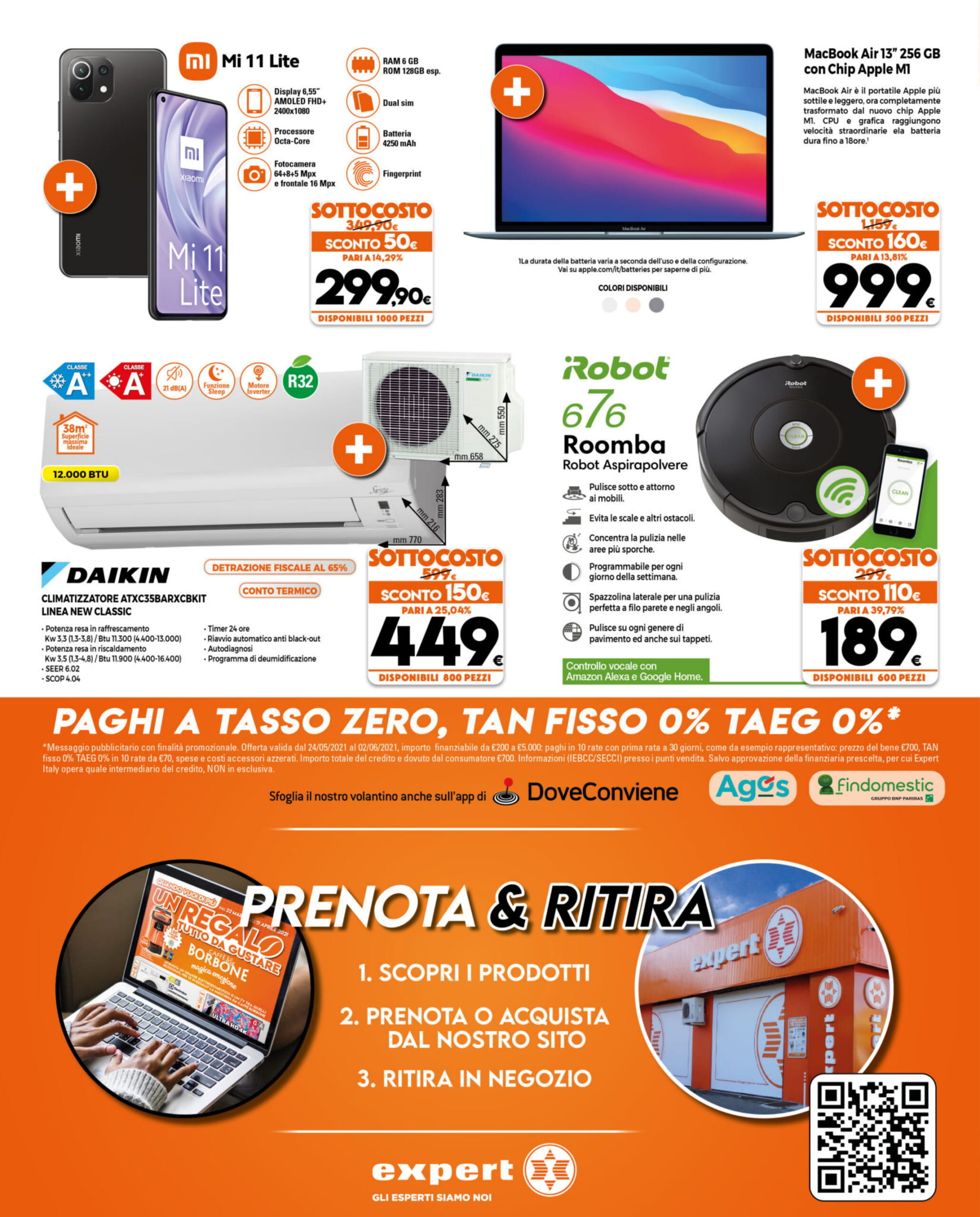 Prima di entrare nel merito delle offerte, è bene ricordare che, come si vede nel volantino, Expert permette di rateizzare il pagamento dei propri acquisti e mette a disposizione il servizio “Prenota & Ritira”. Inoltre, mentre l’intero volantino sarà disponibile fino al 2 giugno 2021, alcune offerte appositamente contrassegnate rimarranno valide fino al 6 giugno 2021.