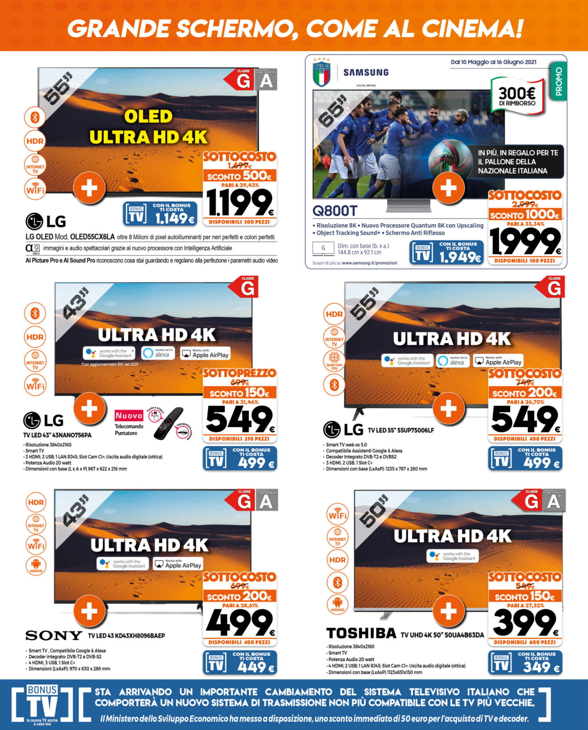 - Samsung Q800T 65″ a 1.999 euro (100 pezzi disponibili)
