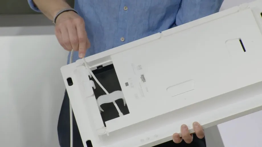 Il cavo di alimentazione può essere instradato in diverse direzioni a seconda di dove si trova la presa elettrica più vicina, inoltre è disponibile un vano per riporre un cavo aggiuntivo sul retro del telaio.