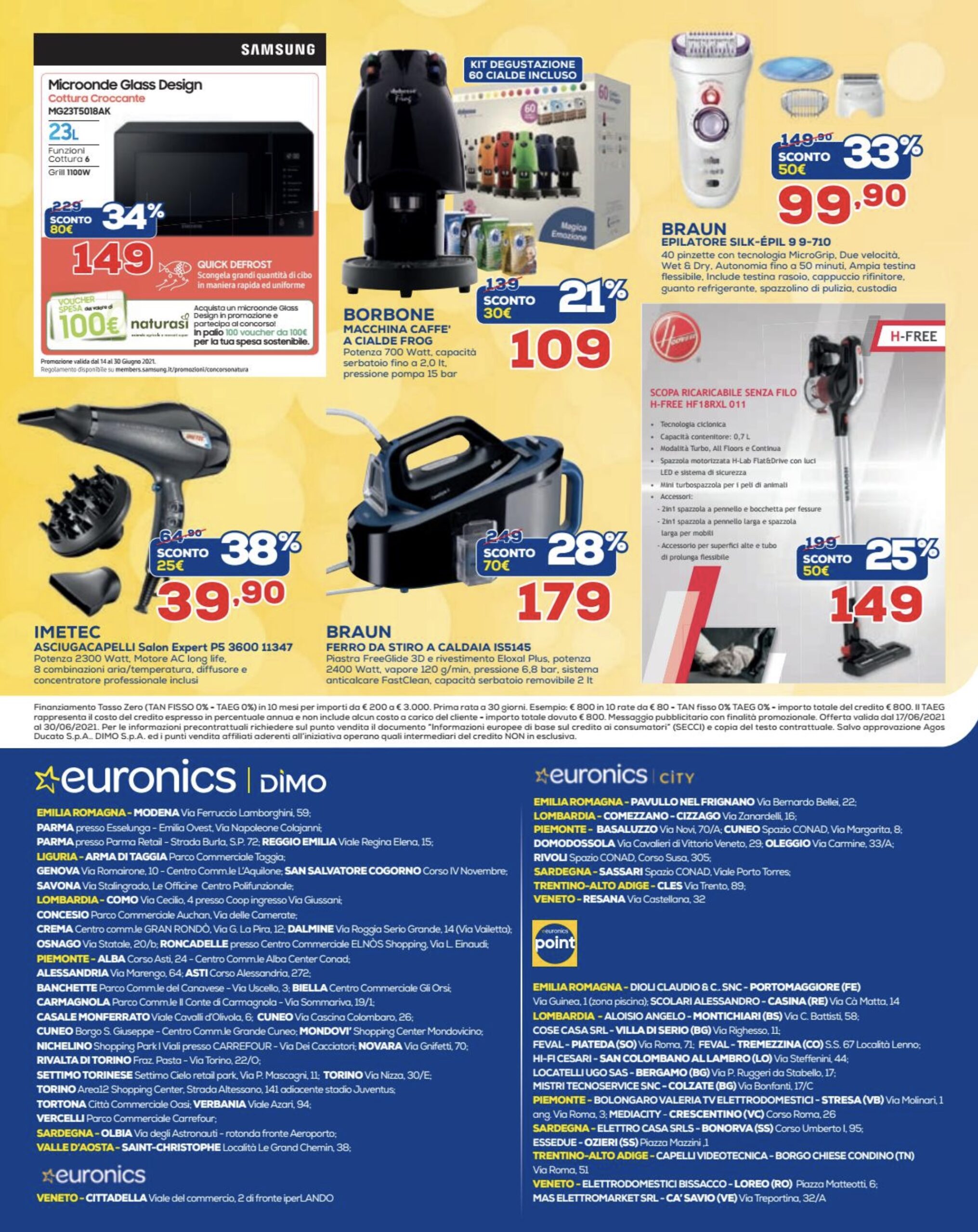 Il volantino di Euronics, valido fino al 30 giugno 2021 per tutti i punti vendita del gruppo “Dimo”, include una vasta selezione di smartphone Android, su cui ci saranno sconti tra il 15% e il 40% sul prezzo di listino e la possibilità, in taluni casi, di un finanziamento in 10 rate a tasso zero (TAN 0%, Taeg 0%). Tuttavia gli smartphone non sono, come abbiamo anticipato, gli unici prodotti interessanti in promo, per cui abbiamo comunque deciso di segnalarvi di seguito le migliori offerte anche su diversi smart TV, notebook e tablet.