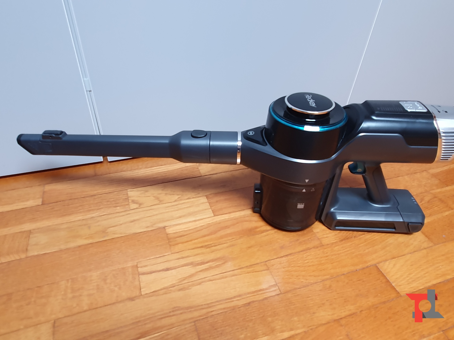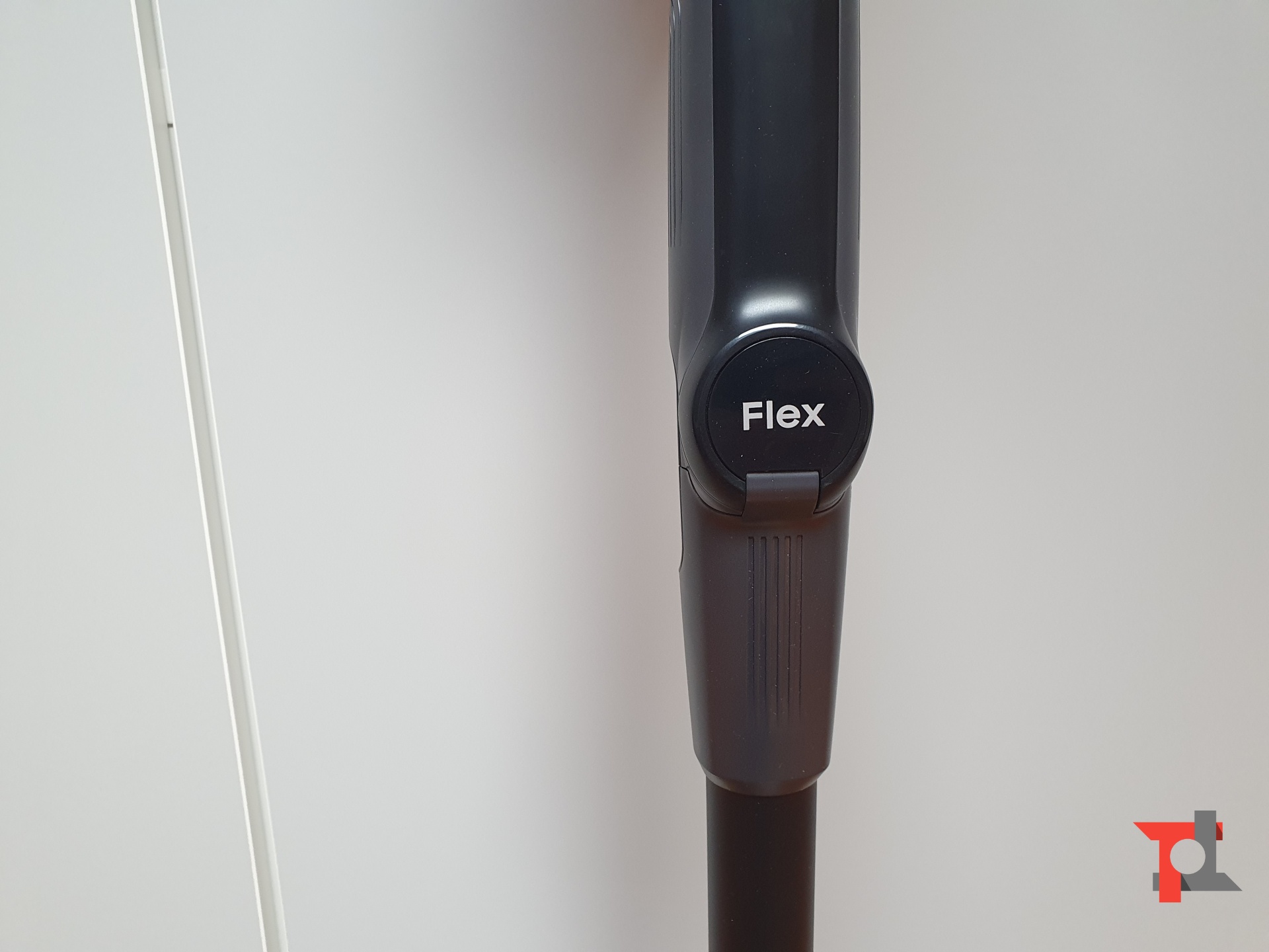 L’idea del tubo pieghevole potrebbe essere bizzarra ma sul campo si dimostra pressoché perfetta. Basta premete un tasto nella parte inferiore del tubo, in maniera molto naturale, per aprire il giunto, all’interno del quale vi è una porzione di tubo flessibile. In questo modo sono riuscito a passare l’aspirapolvere sotto al letto e ai comodini, dove il mio robot laser non passa a causa dell’altezza, ma anche dietro al divano senza doverlo spostare.