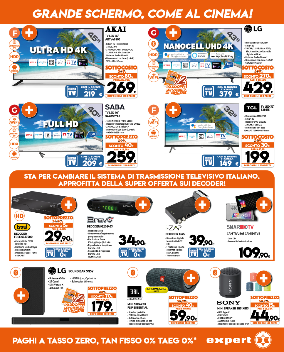 Quelle elencate erano solo alcune delle offerte disponibili nei negozi Expert dei due gruppi. Nelle gallerie di immagini avete a disposizione tante altre promozioni, ma per sfogliare il volantino completo del punto vendita più vicino a voi potete recarvi a questo indirizzo.