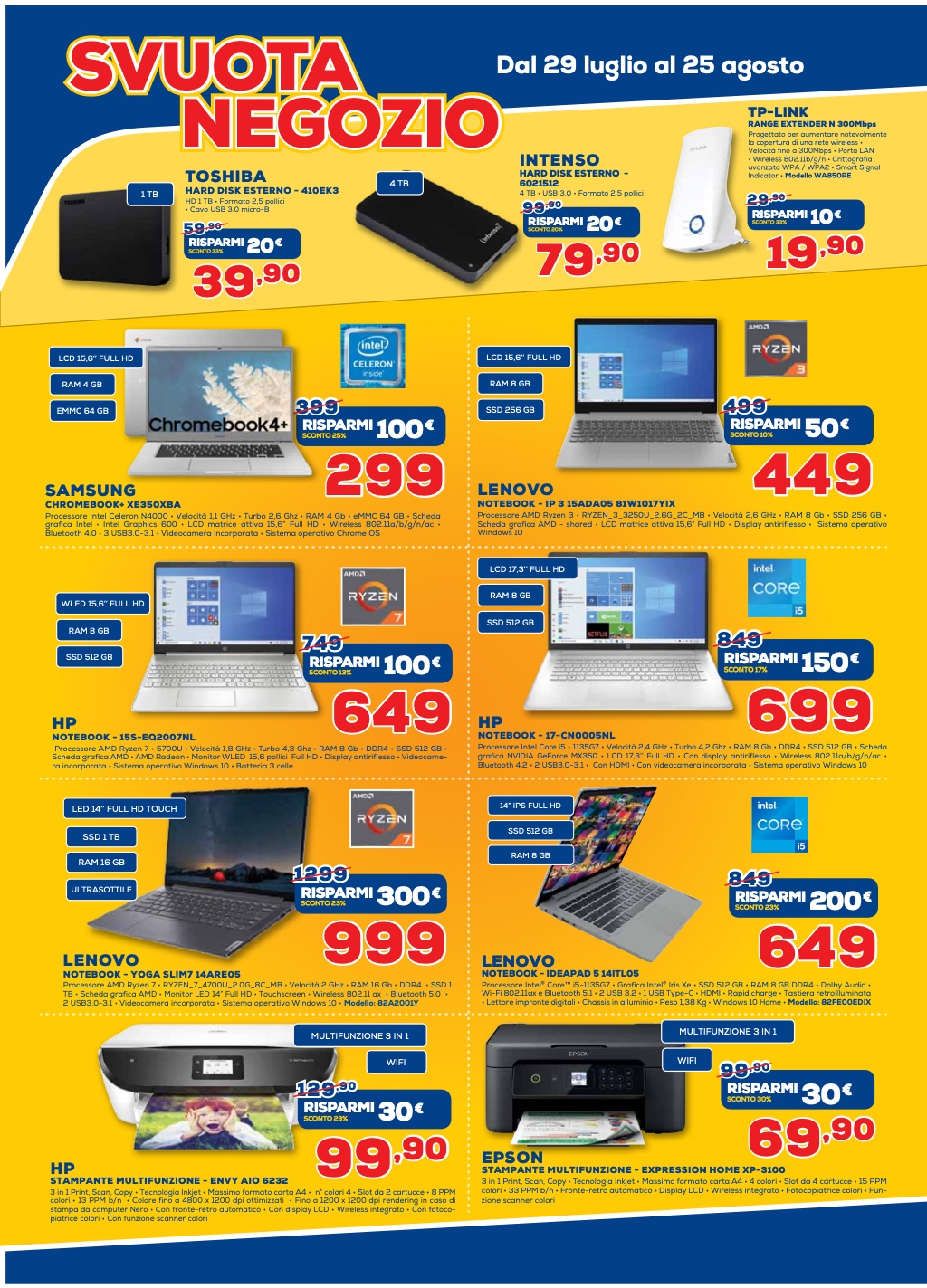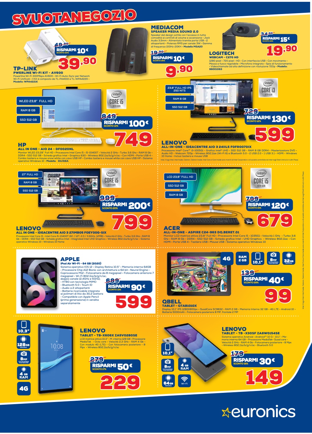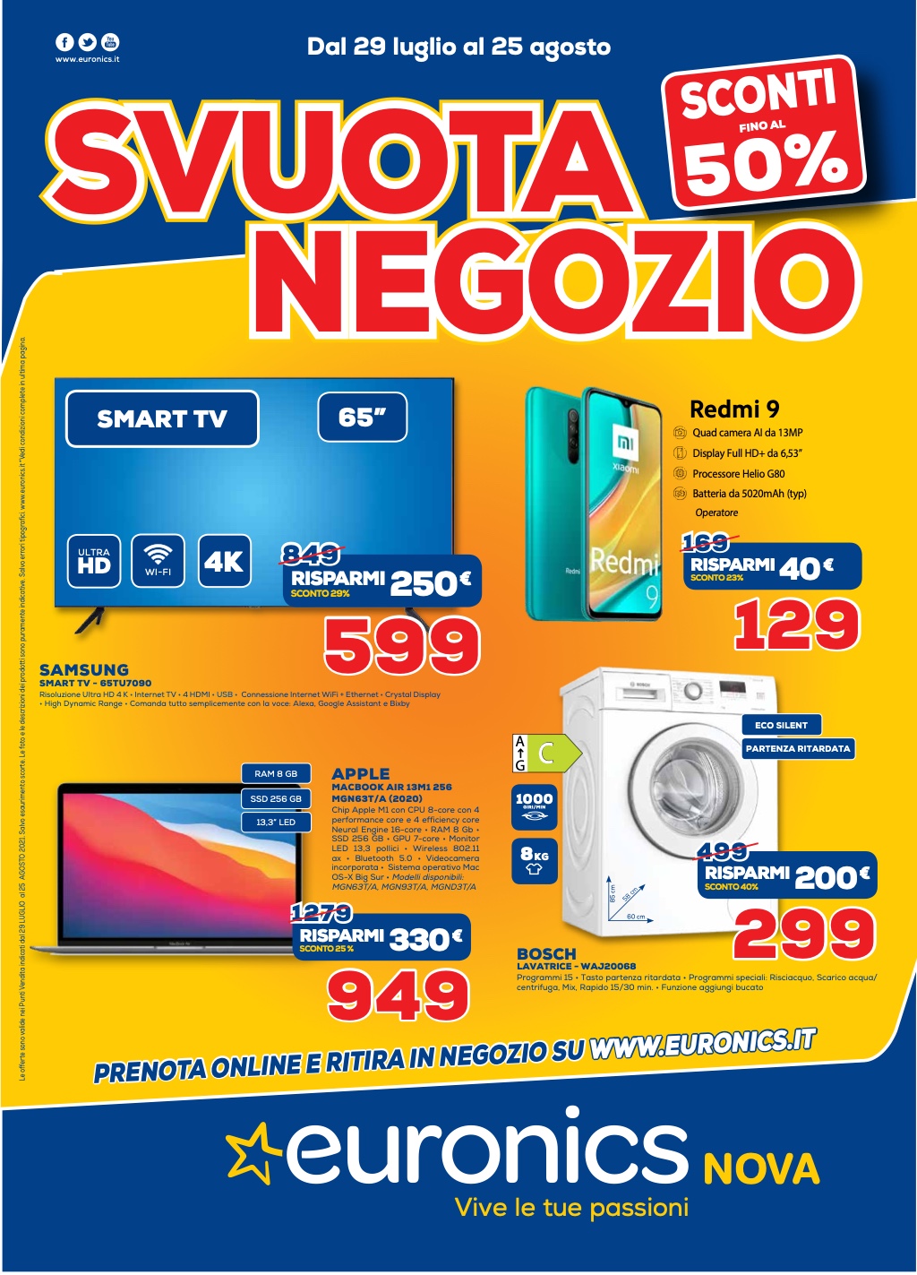 Dopo MediaWorld, Euronics rinnova il proprio catalogo di offerte e, con l’estate ormai alle porte, ha deciso di lanciare il volantino Svuota Negozio, che promette, oltre al finanziamento a tasso zero, sconti fino al 50% su una selezione di prodotti d’elettronica (smart TV, notebook, PC e console).