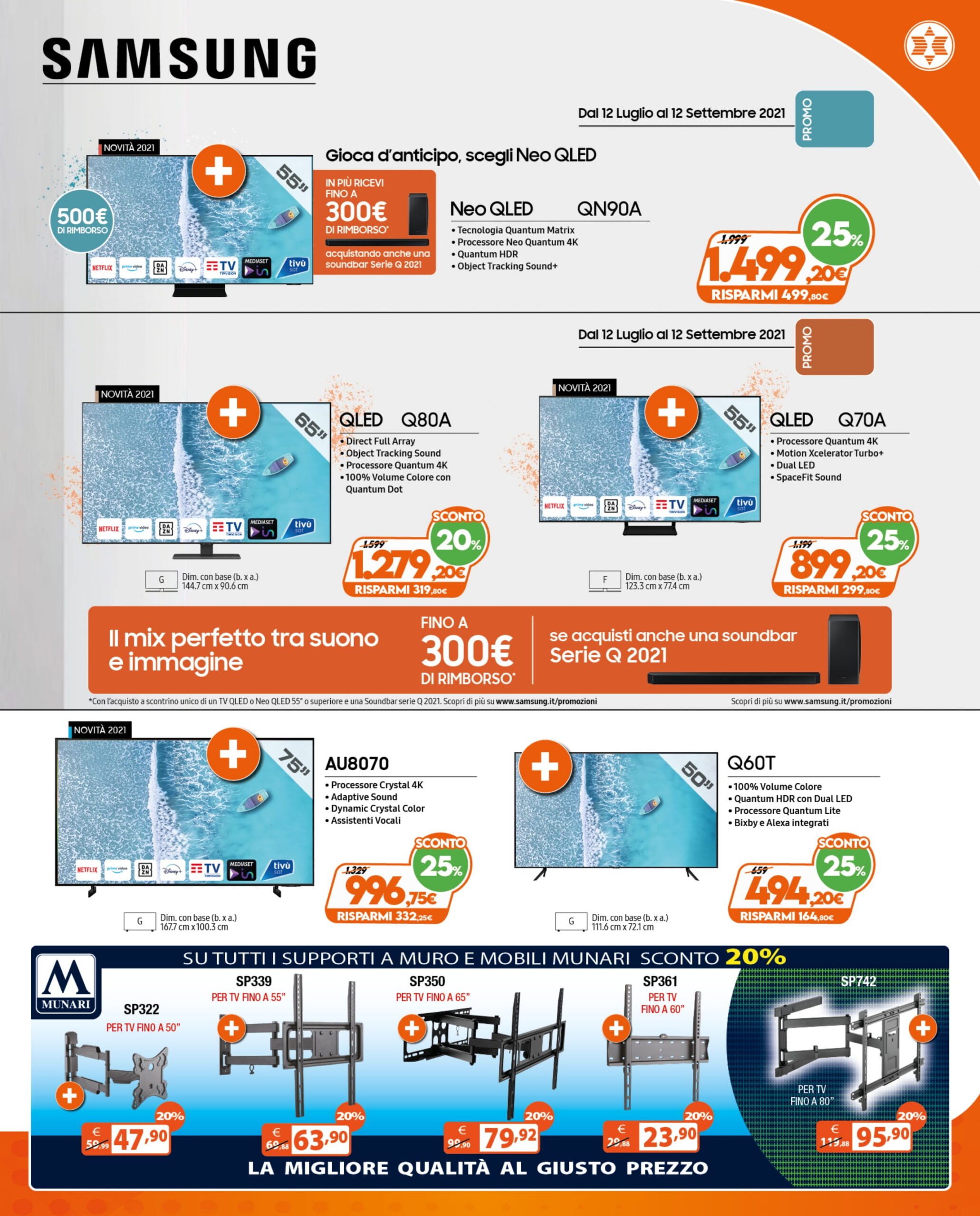- Samsung QLED Q80A a 1.279,20 euro (fino a 300 euro rimborso con soundbar Q 2021)
