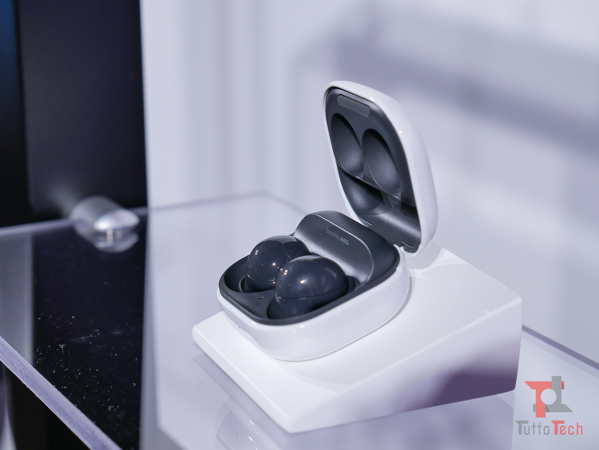 Insieme al nuovo smartwatch arrivano anche le Samsung Galaxy Buds2, dotate di cancellazione attiva del rumore in grado di eliminare fino al 98% del rumore generale. Dal punto di vista tecnico le nuove cuffie sono dotate di woofer e tweeter, per una migliore riproduzione del suono, e tre diversi microfoni, uno interno e due esterni, utilizzati sia per catturare la voce sia per riconoscere e cancellare i suoni ambientali.