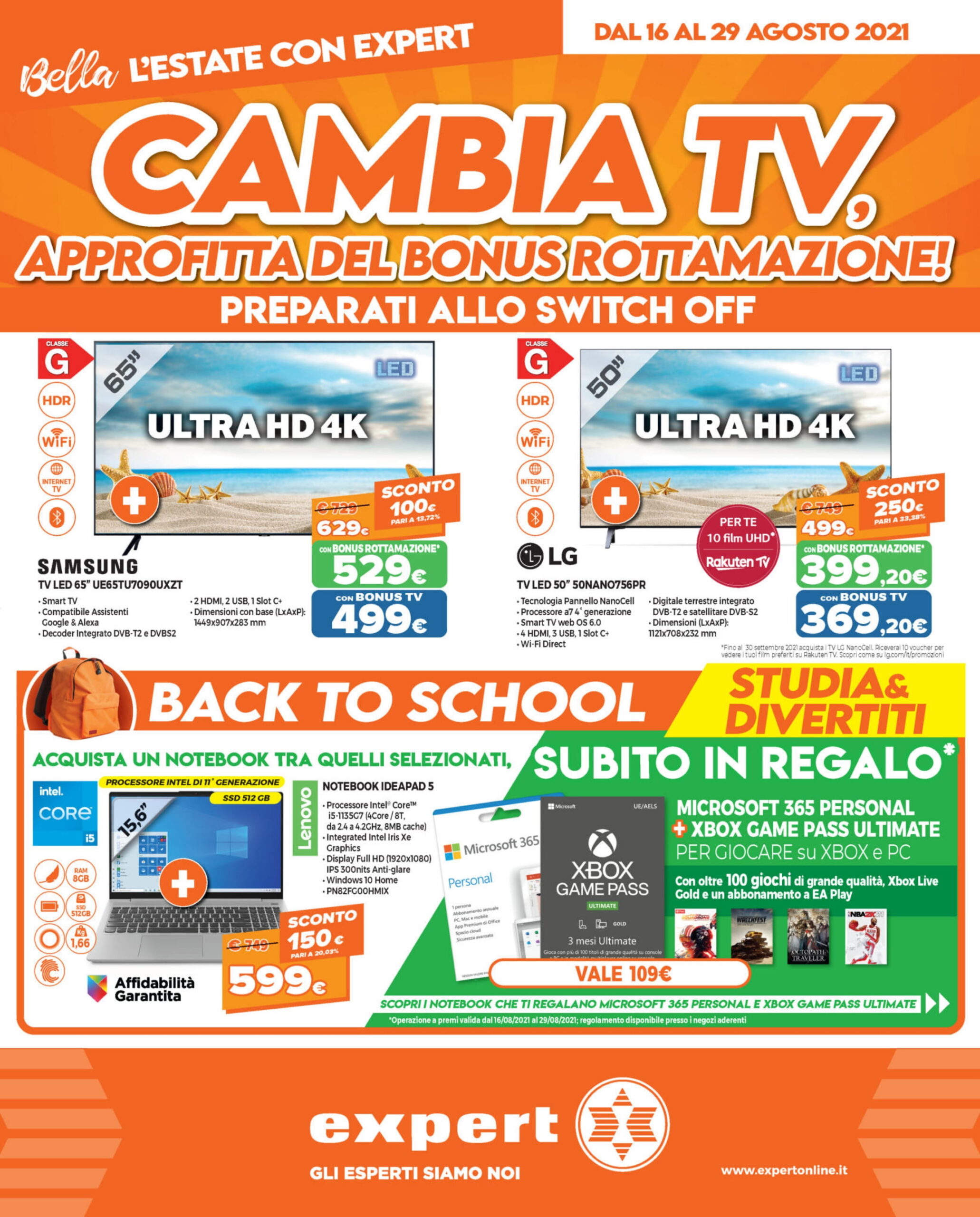 Offerte “Cambia TV” di Expert DGgroup (23 – 29 agosto 2021)