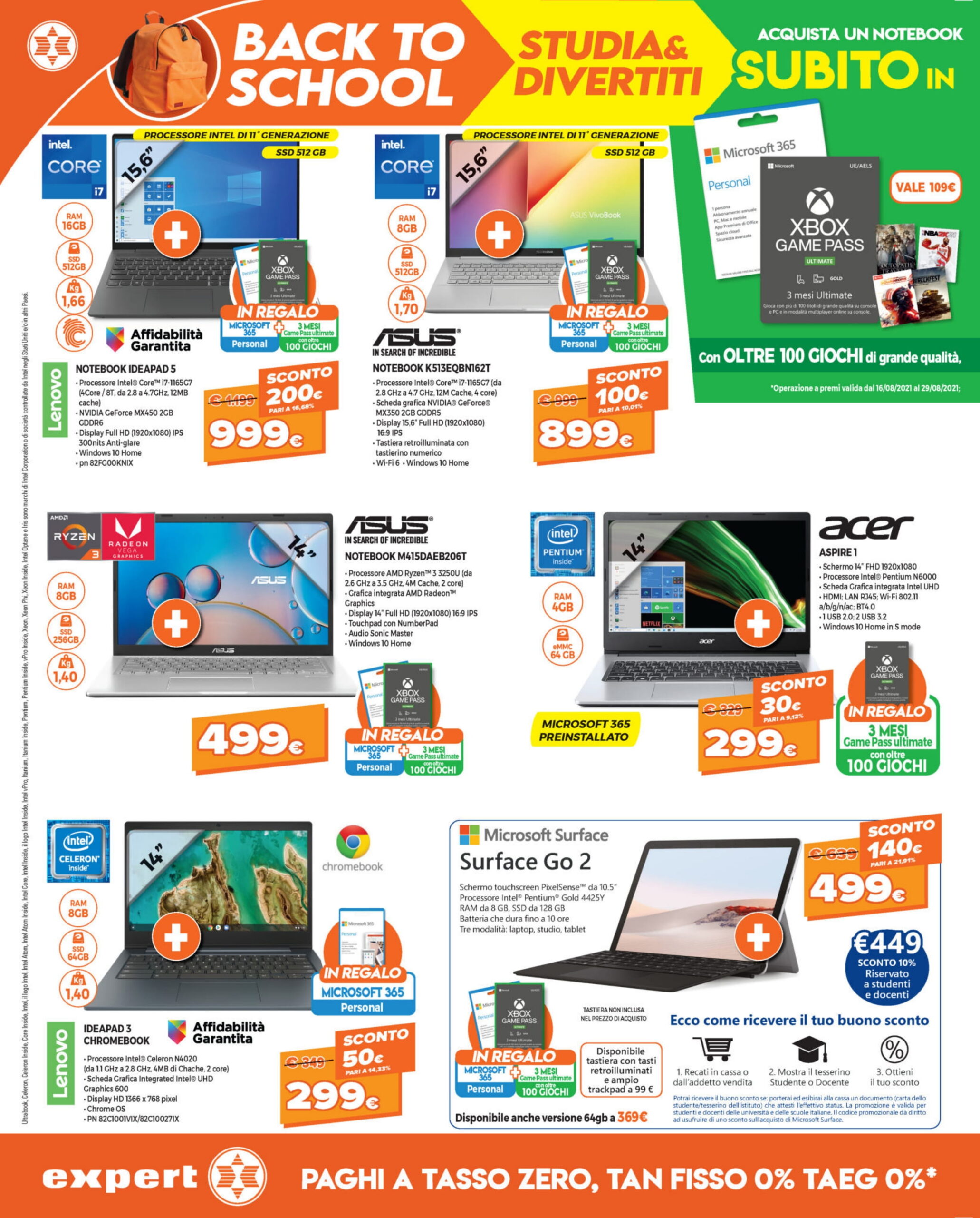 La scadenza del volantino in argomento resta fissata per il 29 agosto 2021 e, ovviamente, il focus rimane sulle offerte riguardanti smart TV e decoder utili per lo switch off del vecchio digitale terrestre (ecco il nostro articolo dedicato al bonus TV con rottamazione fino a 100 euro). Non mancano proposte su tablet e computer dedicate al back to school, né altri prodotti tech come smartphone e wearable.