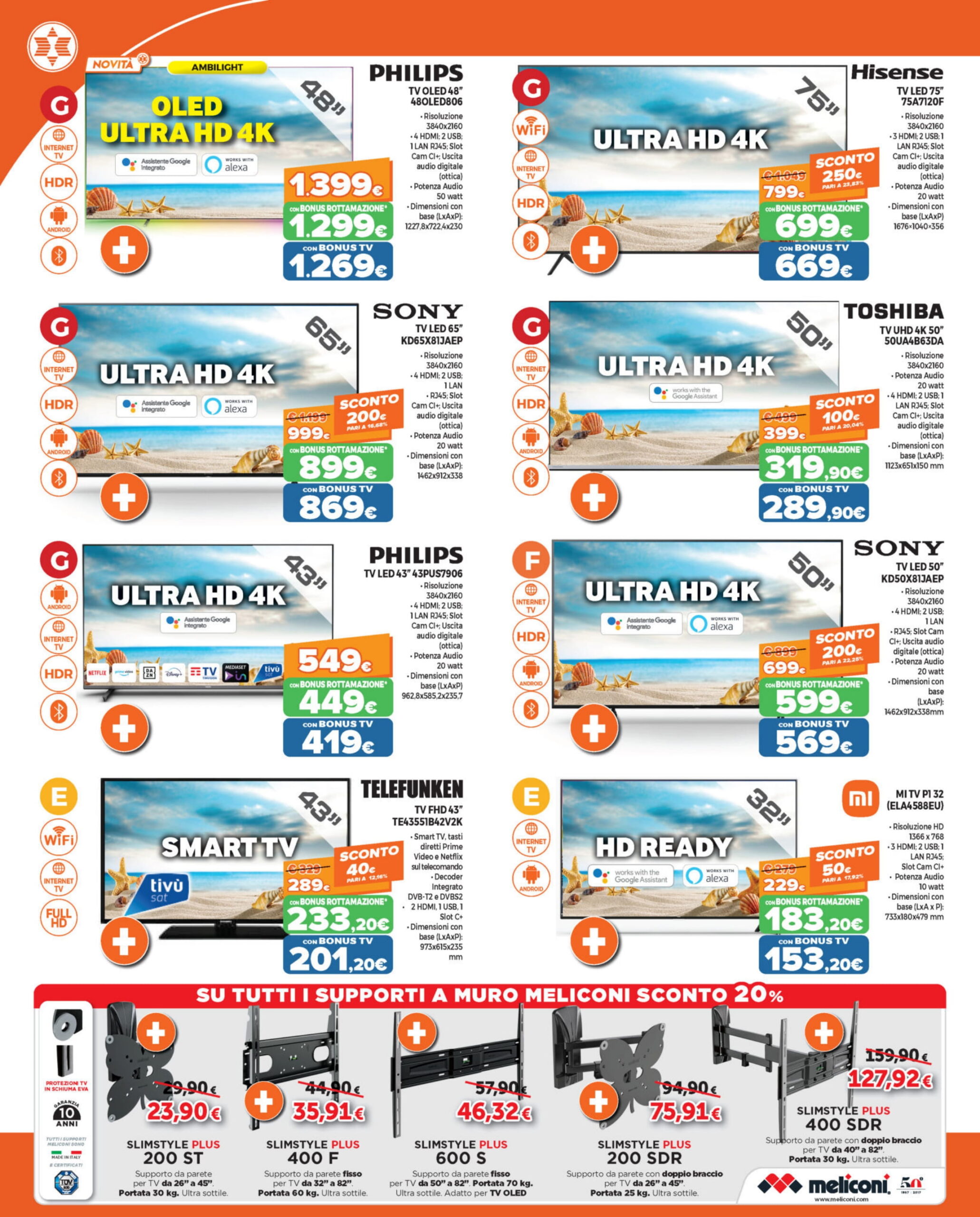 - SONY KD50X81JAEP a 699 euro (con bonus rottamazione 599 euro; con bonus rottamazione + bonus TV 569 euro)