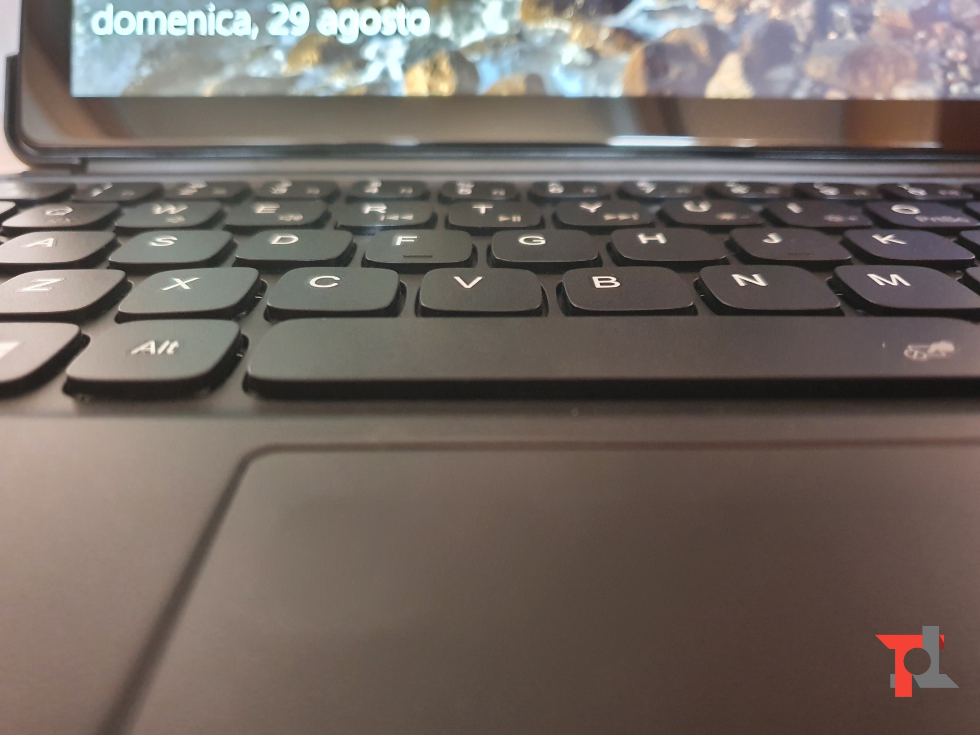 Non si tratta di un problema che va a inficiare il funzionamento del dispositivo, ma viene leggermente compromessa l’esperienza di digitazione. La tastiera presenta dei tasti a isola ben spaziati, con una corsa ridotta ma sufficiente a garantire una buona risposta tattile.