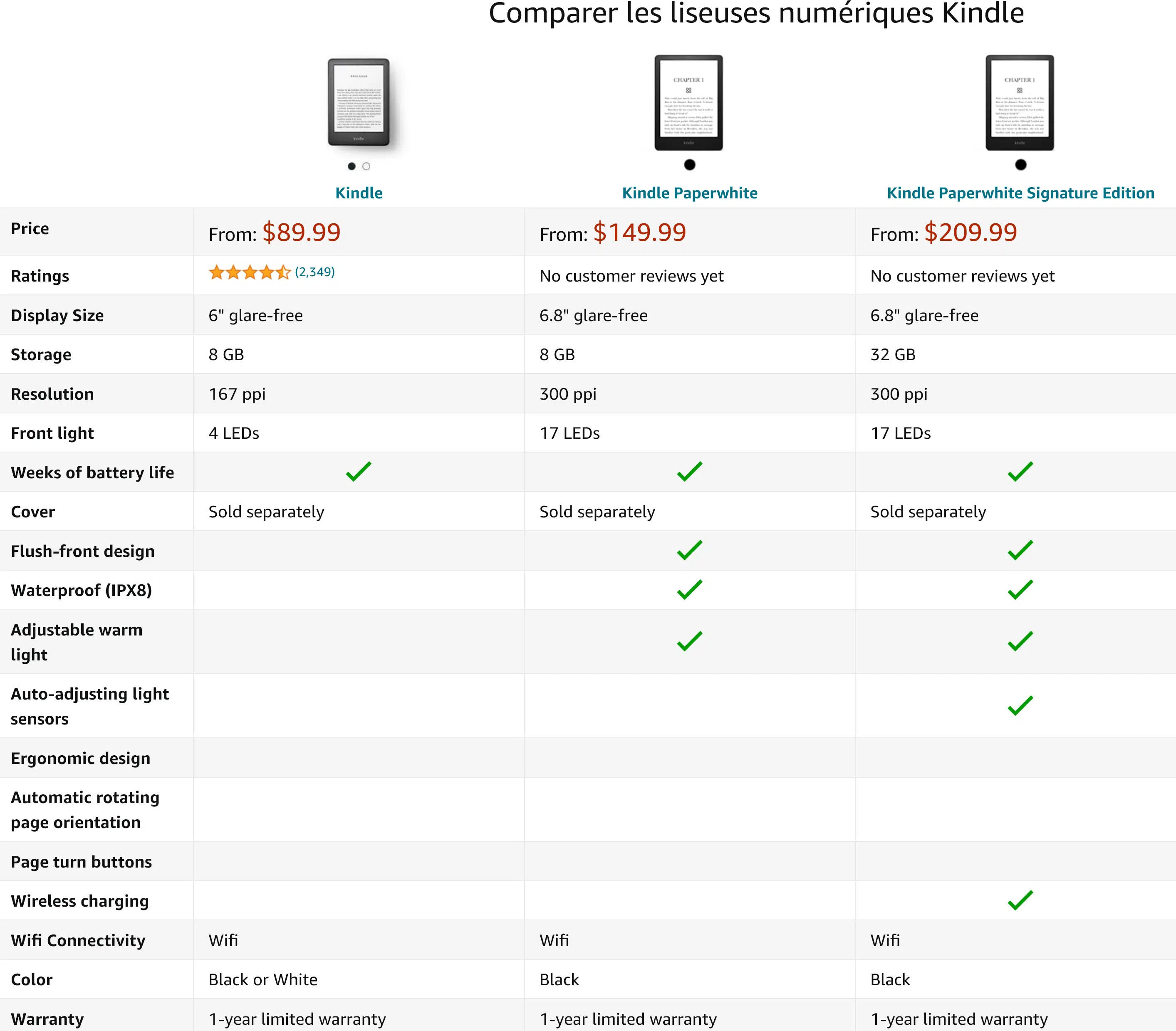 Alcuni utenti di Reddit e GoodReader hanno avvistato una versione inedita di Kindle Paperwhite con annessa edizione speciale “Signature Edition” nelle tabelle di confronto tra i vari modelli presenti rispettivamente sui siti canadese e messicano di Amazon.