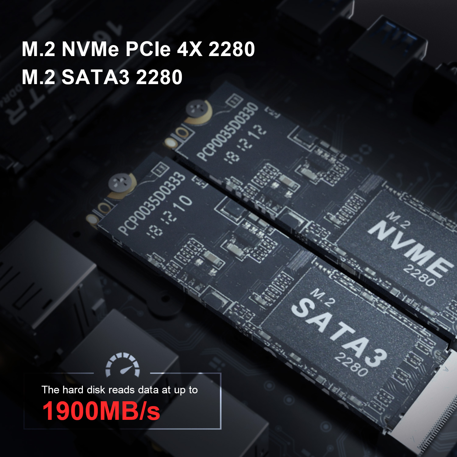 La scheda tecnica parte da una CPU AMD Ryzen 7 3750H, affiancata da una GPU Radeon Vega 10 a 1.2 GHz, 8 o 16 GB di RAM DDR4 a 2,4 GHz e 256 o 512 GB di SSD, con due slot disponibili, uno NVMe PCIe 4X e uno SATA 3, entrambi di tipo M.2 2280, a cui è possibile aggiungere un ulteriore HD SATA fino a 1 TB per l’archiviazione dei dati. Beelink ha curato il raffreddamento, inserendo tre heat pipe e due ventole silenziate, per non recare disturbo durante l’utilizzo quotidiano.