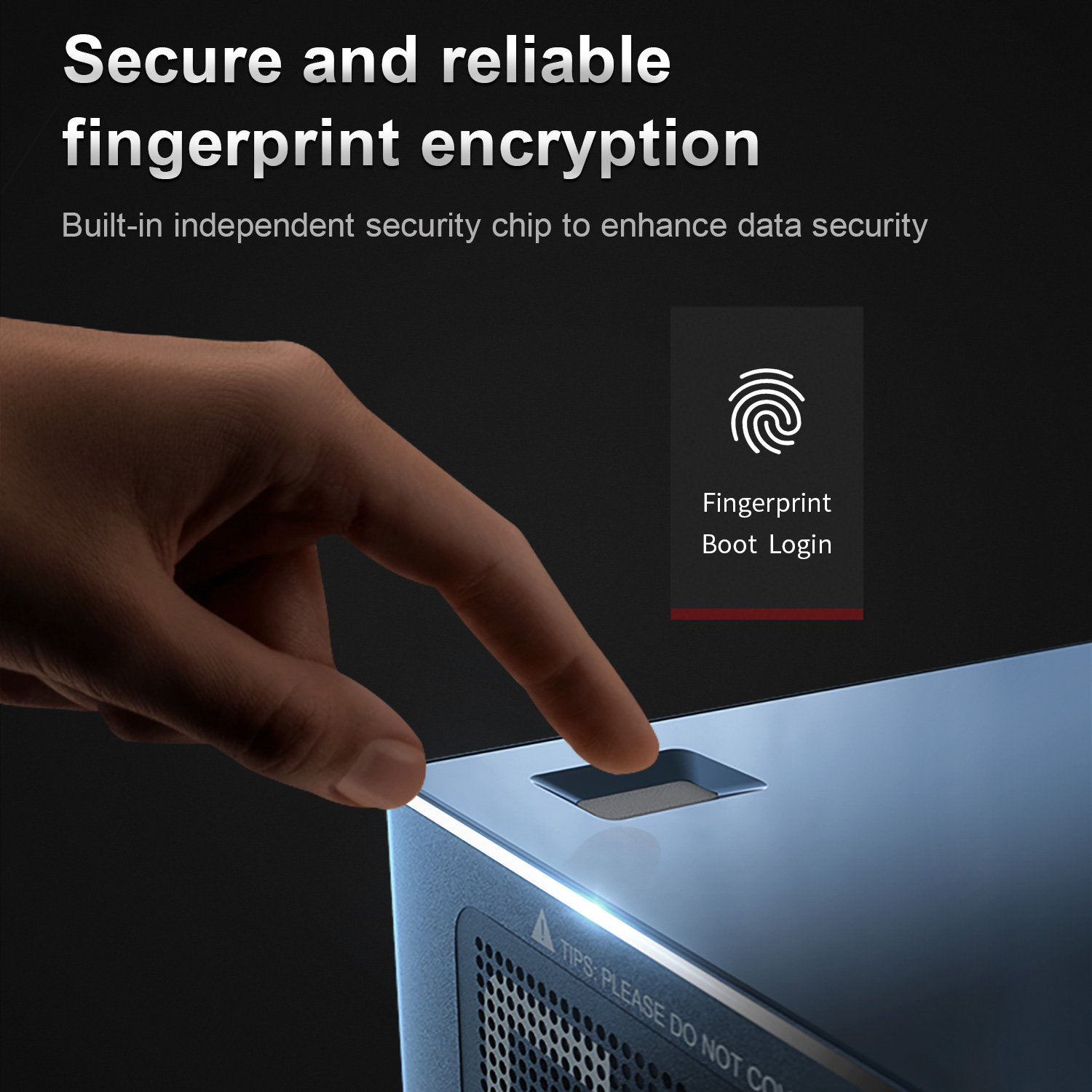 Il case è realizzato in lega di magnesio ed è dotato, nella parte superiore, di un lettore di impronte digitali, controllato da un chip proprietario che aumenta esponenzialmente la sicurezza generale. Decisamente ricca la dotazione di connettori, con due microfoni, due porte USB 3.0, una presa da 3.5 millimetri per le cuffie e una USB Type-C nella parte frontale, oltre al tasto di accensione e a quello RTC.