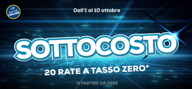 L’iniziativa promozionale, che prevede sconti fino al 50% (e anche oltre) su tantissimi prodotti tecnologici, sarà infatti affiancata dalla possibilità di accedere al finanziamento a tasso zero: i clienti potranno acquistare prodotti da almeno 299 euro e pagare in 20 rate senza costi aggiuntivi.