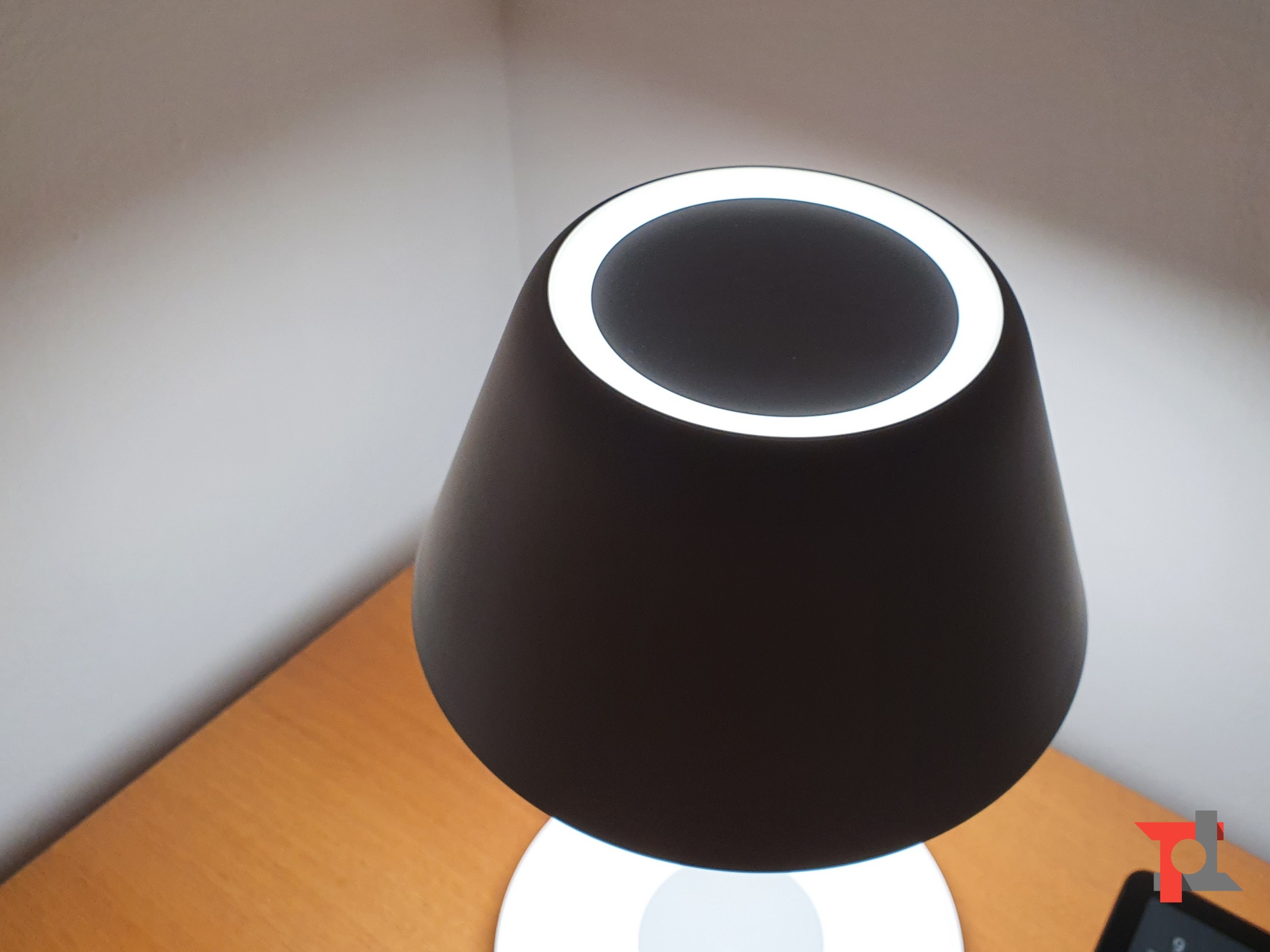Sulla base è presente un pulsante che serve per l’accensione e spegnimento, ma anche per regolare la temperatura dei LED e per lo spegnimento ritardato, una funzione molto comoda per chi vuole usare la lampada nella cameretta dei bambini. Una singola pressione accende o spegne la lampada, una pressione prolungata regola temperatura e luminosità, un doppio tocco attiva lo spegnimento ritardato.