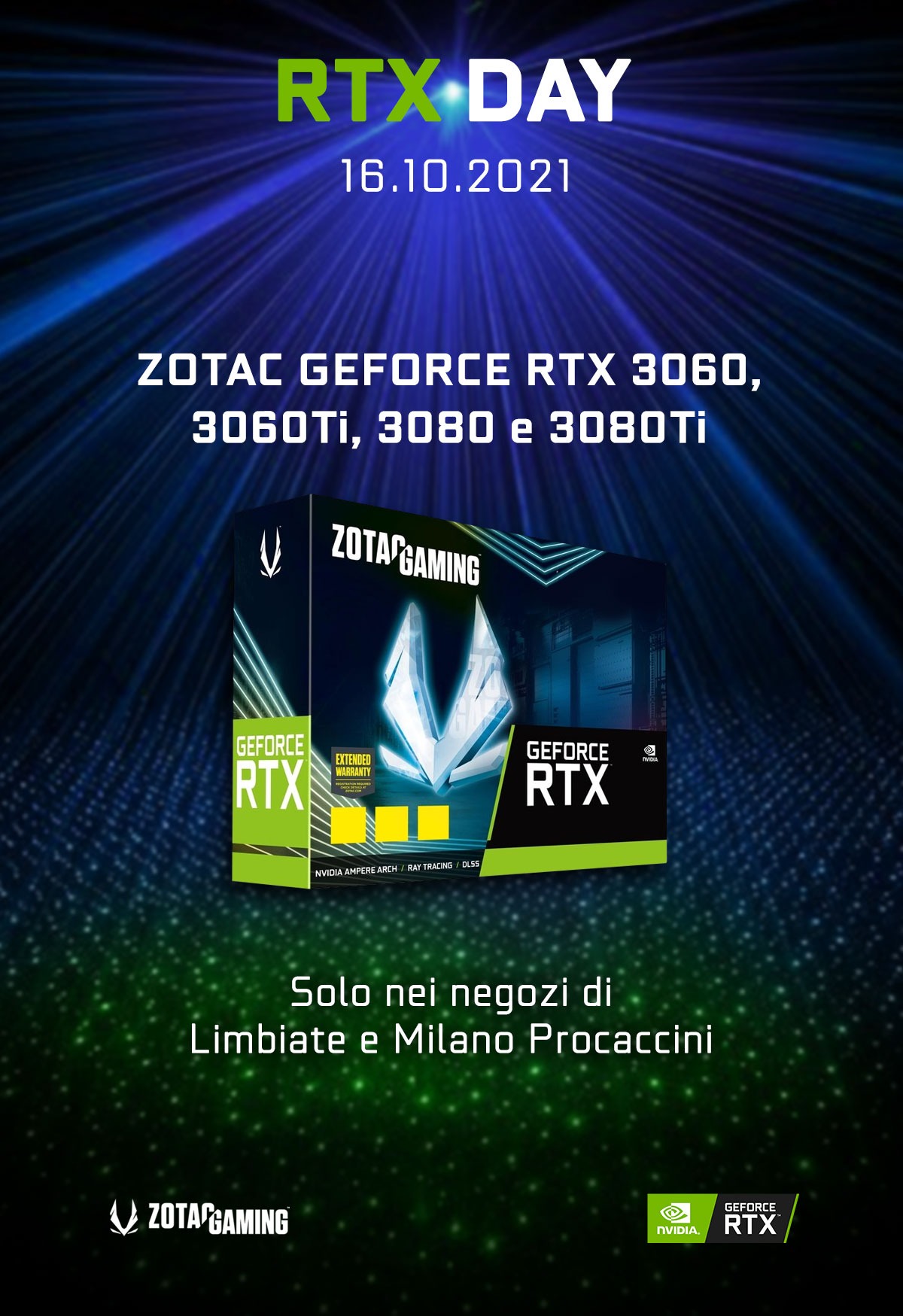 A distanza di poche settimane dalla prima edizione, che ha ottenuto un successo scontato, torna l’iniziativa RTX DAY pensata per consentire a tutti gli appassionati di gaming di acquistare una scheda video GeForce RTX Serie 30. L’evento nasce grazie alla collaborazione tra NVIDIA e ZOTAC, che renderanno disponibili centinaia di schede in due negozi NEXT situati in Lombardia.