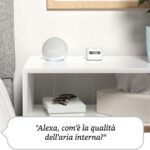 Il piccolo dispositivo (misura appena 65 x 65 x 45 millimetri) è sprovvisto di schermo, ma tutti gli avvisi e le informazioni possono essere visualizzati tramite un dispositivo Echo o attraverso un annuncio nell’app Alexa. In questo modo sarà possibile eseguire manualmente alcune semplici operazioni, come aprire una finestra per cambiare l’aria, ma anche avviare in maniera automatica un purificatore d’aria al superamento di determinate soglie.