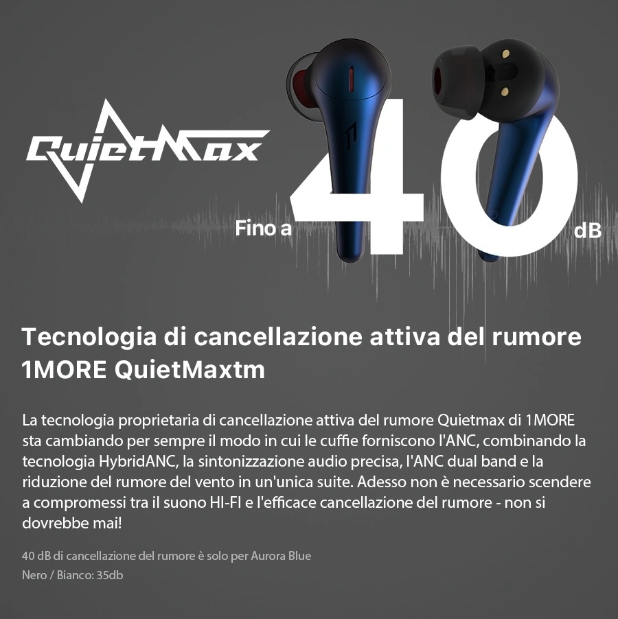 La versione di punta offre infatti una cancellazione del rumore di ben 40 decibel che si ferma a 35 decibel per le colorazioni bianca e nera, grazie alla tecnologia Quietmax che integra una tecnologia HybridANC, la sincronizzazione audio ad alta precisione, la cancellazione attiva dual band e la riduzione del rumore del vento, per un suono assolutamente privo di compromessi e di altissima qualità.