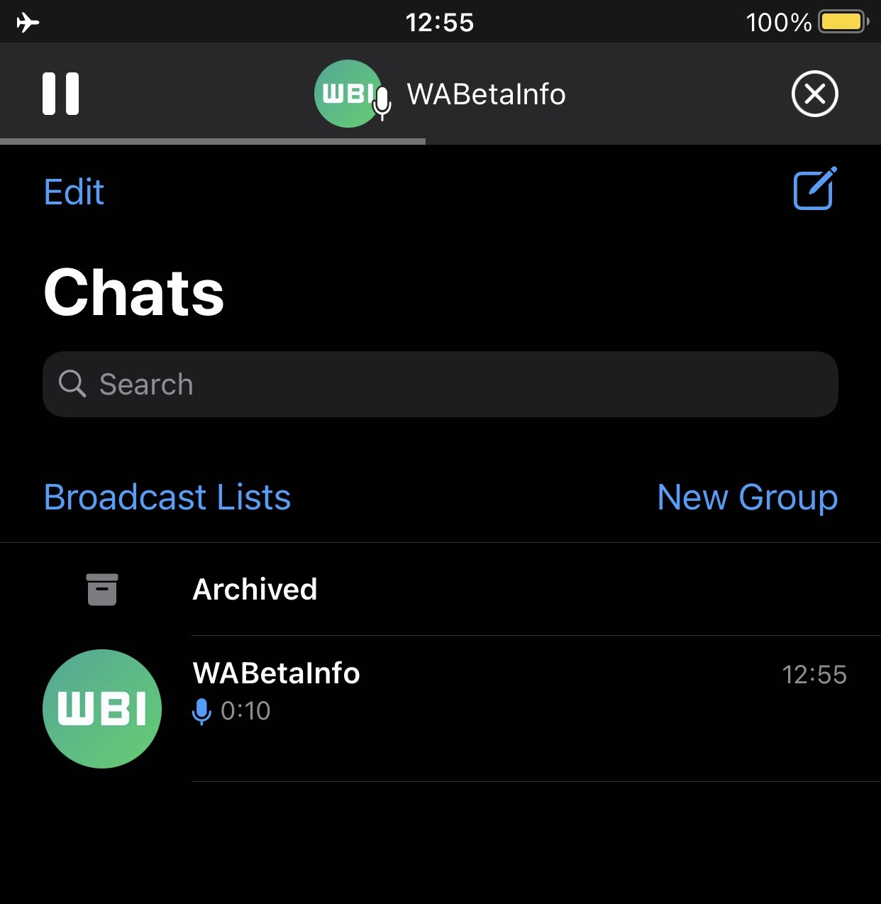 Il riproduttore di note vocali di WhatsApp consente agli utenti di continuare ad ascoltare i loro messaggi vocali anche se aprono un’altra chat, in quanto continuano a essere riprodotti in background.