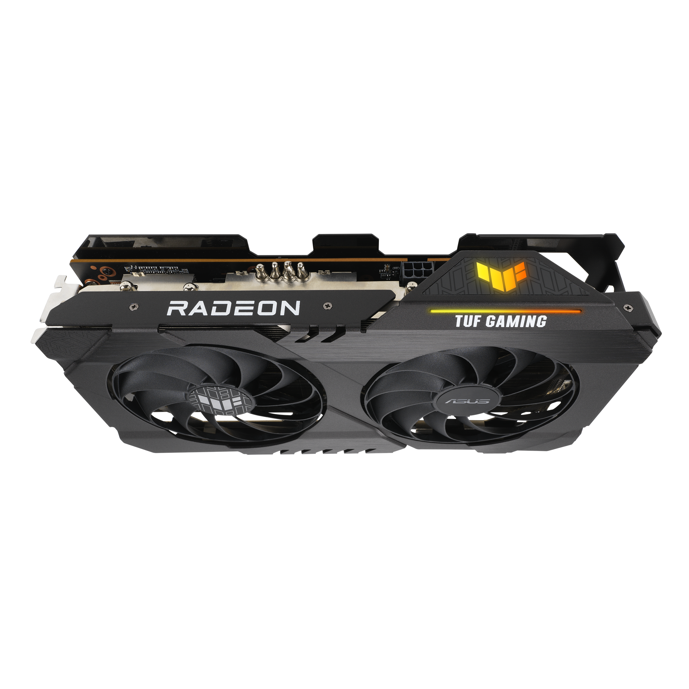 La nuova TUF Gaming Radeon RX 6500 XT presenta un design elegante merito della piastra posteriore in alluminio e dell’illuminazione Aura RGB intorno al logo TUF. La compatibilità Aura Sync permette di abbinare in libertà l’illuminazione della scheda al resto della configurazione PC, mentre la sezione aperta della piastra posteriore consente all’aria di passare attraverso il dissipatore per garantire un raffreddamento ottimale.