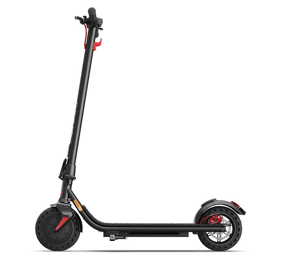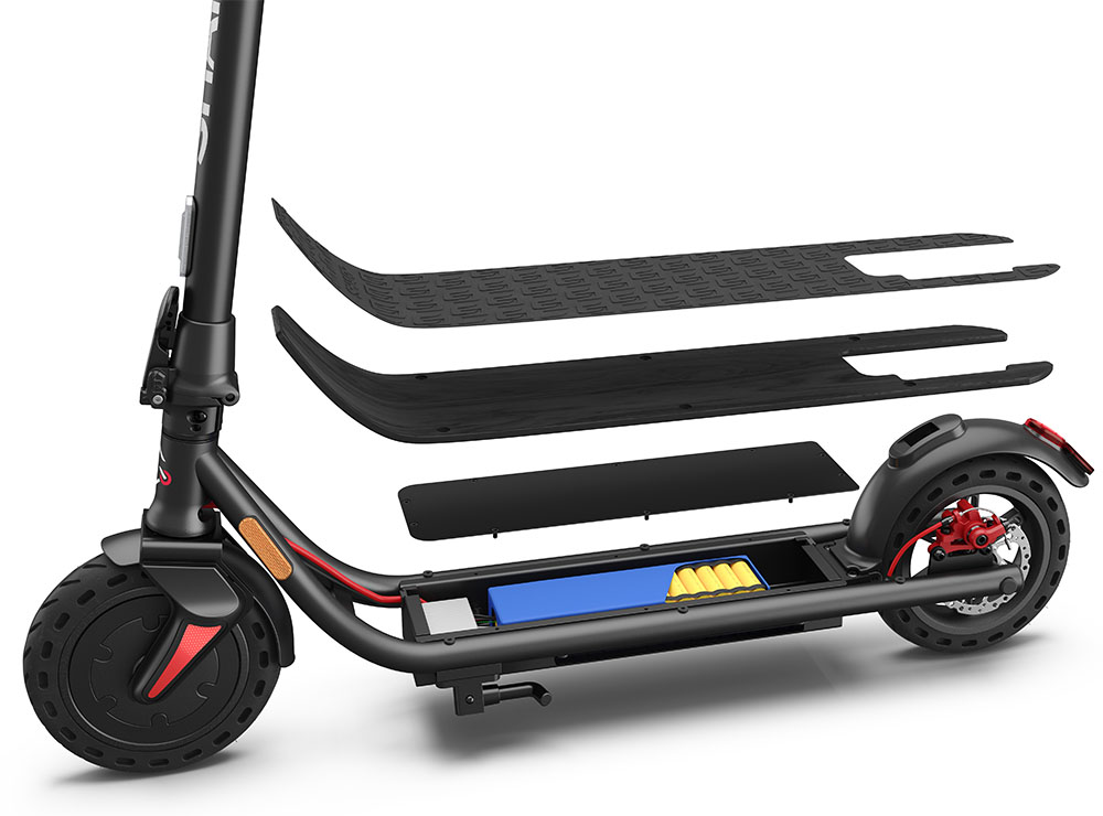 Il telaio del monopattino è realizzato in lega di alluminio, acciaio e ABS per supportare un carico massimo di 120 kg. La stabilità sul manto stradale è garantita dagli pneumatici a nido d’ape da 8,5″ e dal doppio freno, uno a disco e uno elettrico.